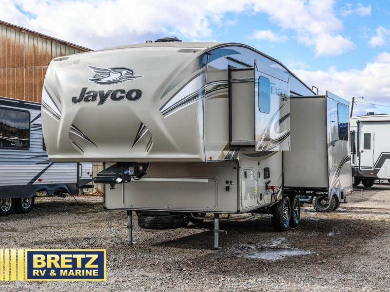 Whether you are just starting out in the camping industry, or have been camping for many years, this 24.5CKTS Jacyo Eagle HT fifth wheel is ideal for either situation. Enjoy triple slide outs throughout this model, as well as a rear living area plus a spacious kitchen.