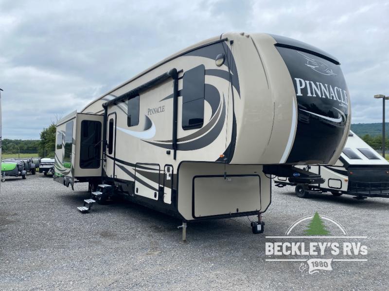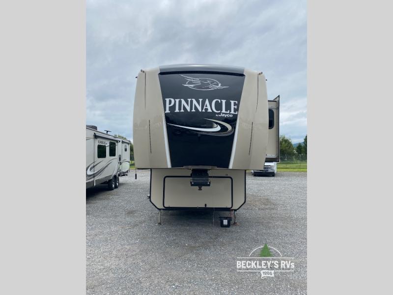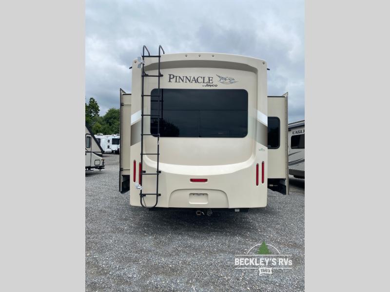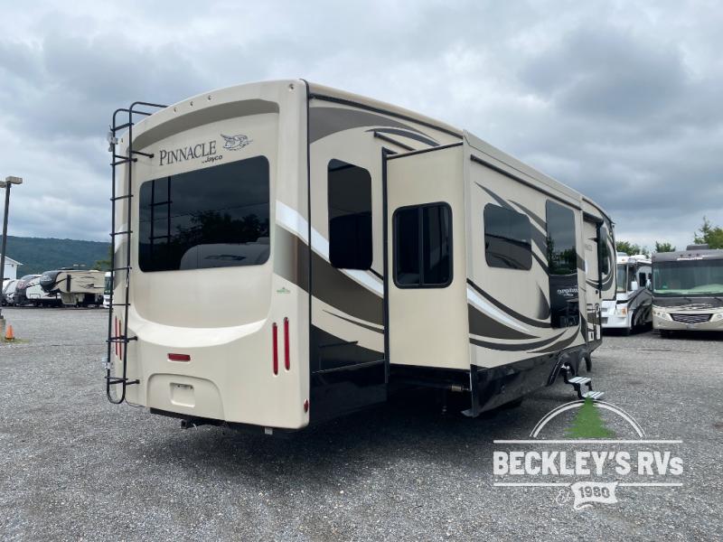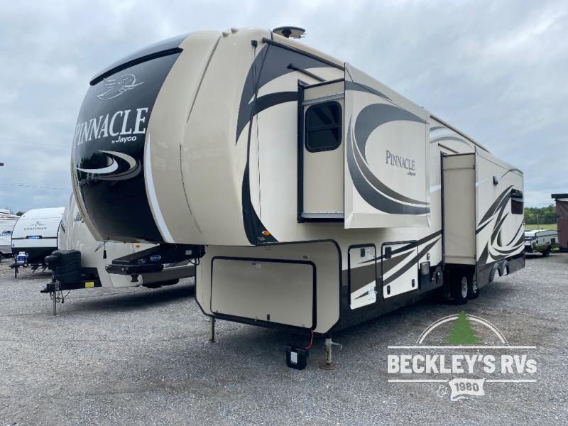You will love all of the room and space inside this Jayco Pinnacle 36KPTS fifth wheel. This model features triple slide outs and a rear living area.