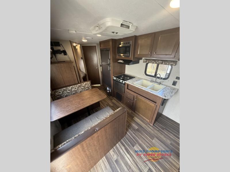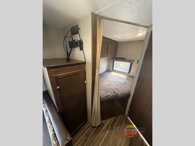Camping is simple in this Keystone Hideout model 19FLBWE. This travel trailer features a rear bath layout, bunks, and more!
