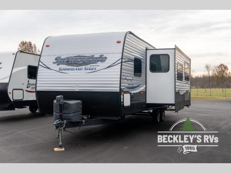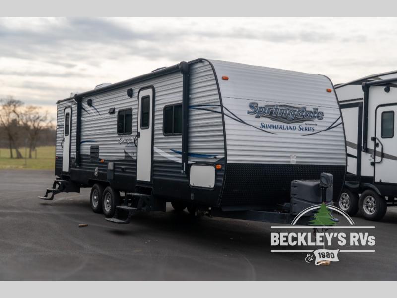 For the larger family this Summerland 2820BH by Springdale is the perfect travel trailer. It features a set of double size bunks, two entry doors, a large slide out, and sleeping for eight people.