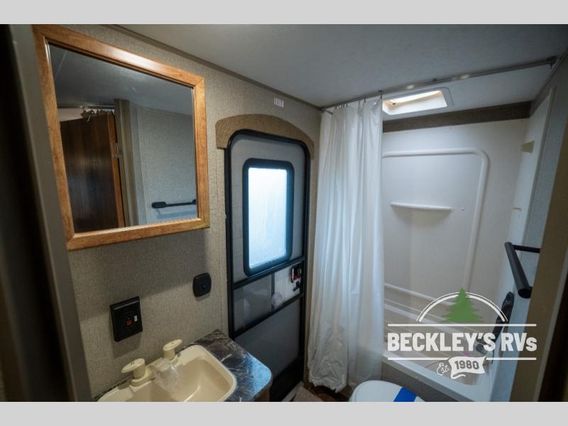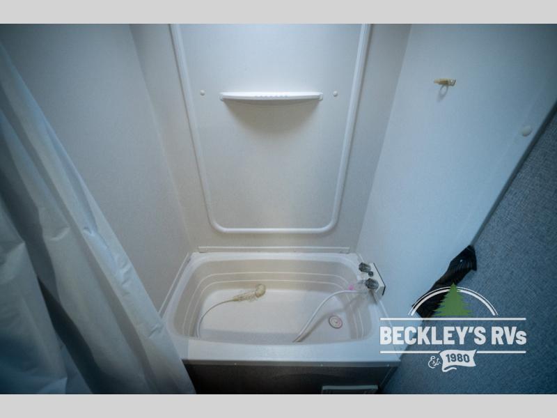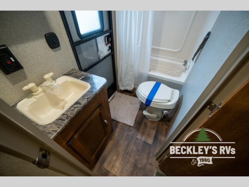 The rear corner bath features a private entry door for easy access when spending time outside. There is a tub/shower, toilet, and vanity with sink, plus so much more!