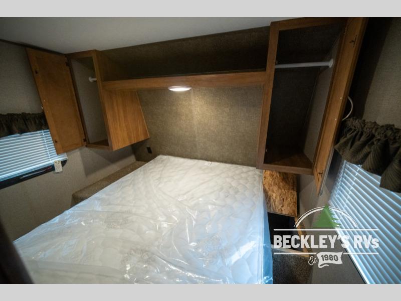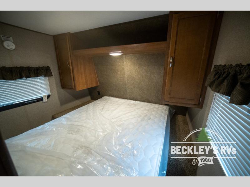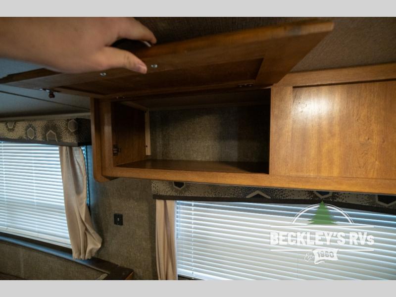 For a quiet retreat, come enjoy the front bedroom. Here you will find a queen bed, two closets, and an overhead cabinet for your personal belongings.