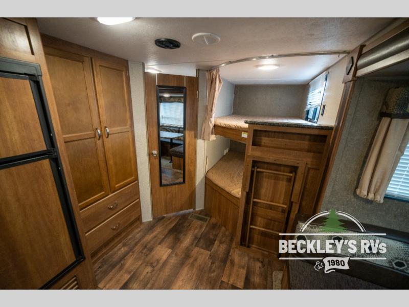 The rear features a set of double size bunks that the kids will surely love. Or, you can easily take along extra guests. There is a convenient ladder to access the top bunk easily.