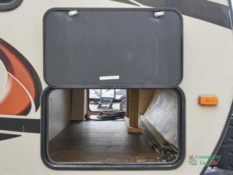 Smart Storage & Outdoor Options: Enjoy ample overhead cabinetry throughout, plus a front exterior pass-through storage compartment and a curbside trunk door for added convenience. You can also opt for the available outdoor kitchen, complete with a refrigerator, two-burner cooktop, and sink.