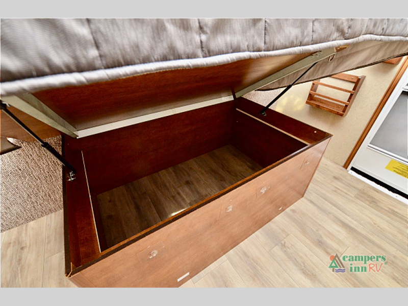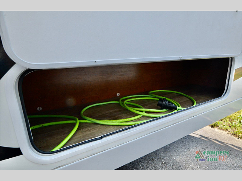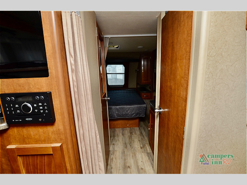 The front private bedroom features a separate entry door for added convenience. Inside enjoy a walk-around queen size bed with wardrobes and nightstands on both sides, plus an optional mounted TV, and so much more!