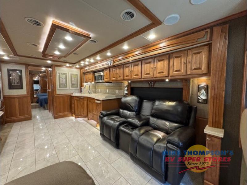 At the front of the Phaeton 36 GH, you will find more overhead cabinets as well as a center mounted TV.