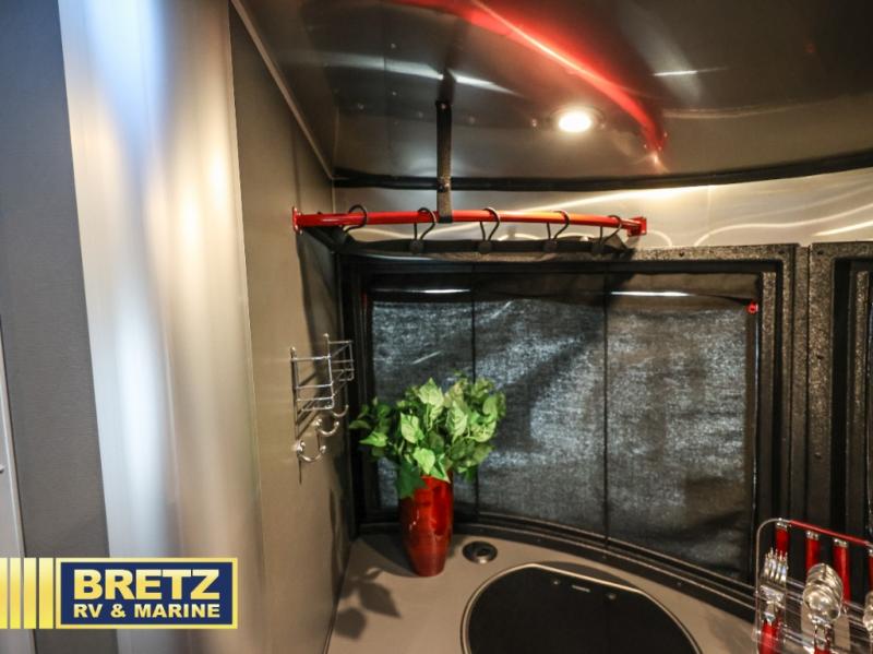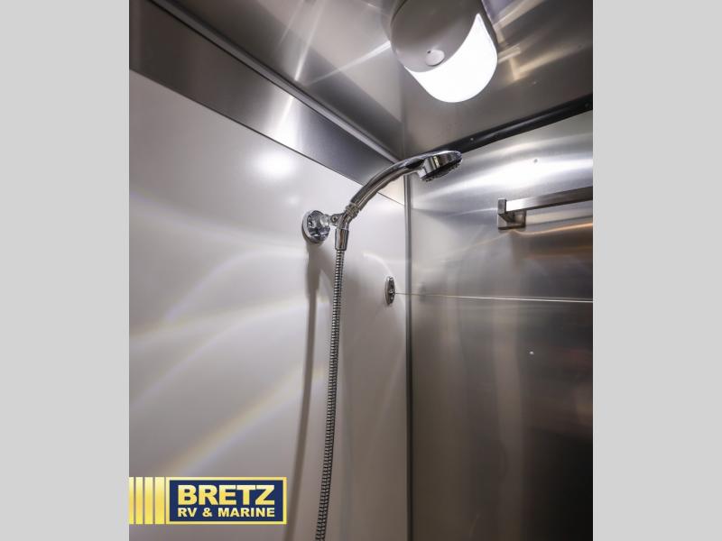 The Basecamp by Airstream offers easy towing, easy set up, and plenty of comforts for your active lifestyle.  From the semi-monocoque aluminum superstructure, the thermal barrier protection, the Nev-R-Adjust brakes, and the Goodyear tires, you can enjoy a Basecamp for years to come.  The convenient wet bath inside and the outdoor shower from the pass-through water access both allow you and your toys to stay clean no matter how dirty you get.  So if you are looking for a launch pad for your extreme lifestyle, choose a Basecamp today!