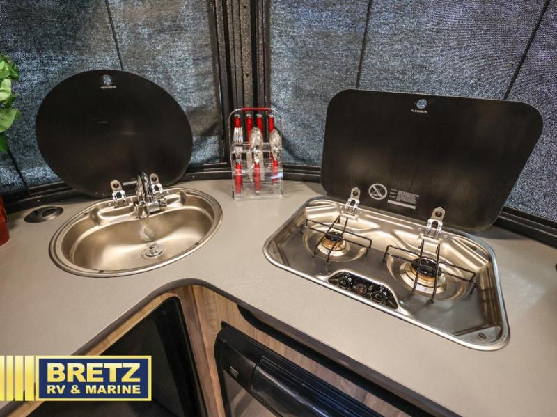 If you are seeking adventure with less hassle this Basecamp Std. Model travel trailer might just fit your fun lifestyle.  It's easy to hitch up and provides plenty of comforts of home for off-road and off-grid adventures.  The front kitchen allows you to store perishables in the refrigerator and make meals on the two-burner cooktop. Just imagine relaxing on the bench seats with a pedestal table in between while your storage is under your seat.  You can configure the sleeping arrangements into one full bed or two smaller beds whichever you prefer.  The on-board wet bath comes in handy during the nighttime and daytime, and the retractable clothes line allows you to hang a wet towel or two.  Check this model out!