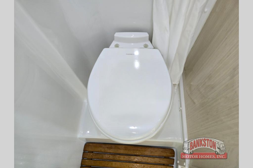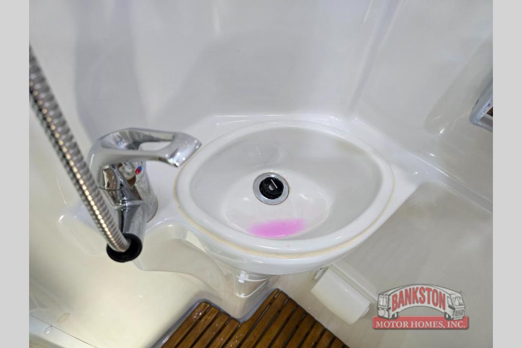 As you move toward the rear notice a convenient wet bath on your right which includes a toilet, small sink, and shower.
