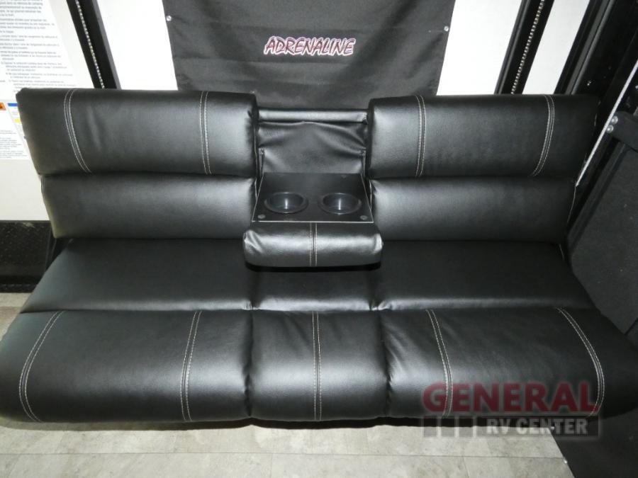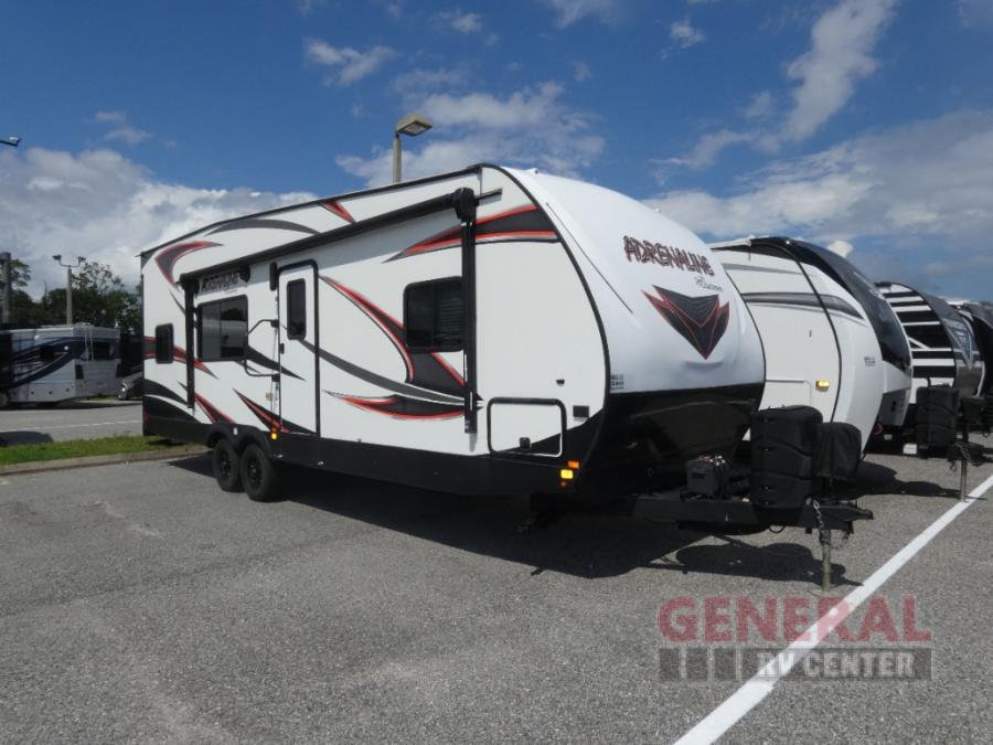 With any Coachmen RV Adrenaline toy hauler travel trailer you will appreciate the 8'6" wide-body construction with Azdel Onboard composite sidewalls, and Dexter Axle brand E-Z Lube and Flex Suspension, as well as Nev-R-Adjust brakes for a safer and smoother ride to every campout. The 30 gallon fuel station will keep the toys running, and the USB ports will allow the electronics to stay charged all while the 40" Jensen LED TV will keep you entertained while you wait your turn on the toys. Choose your favorite model, and enjoy the Adrenaline rush!