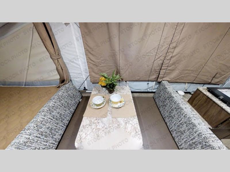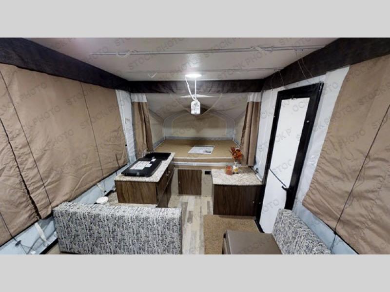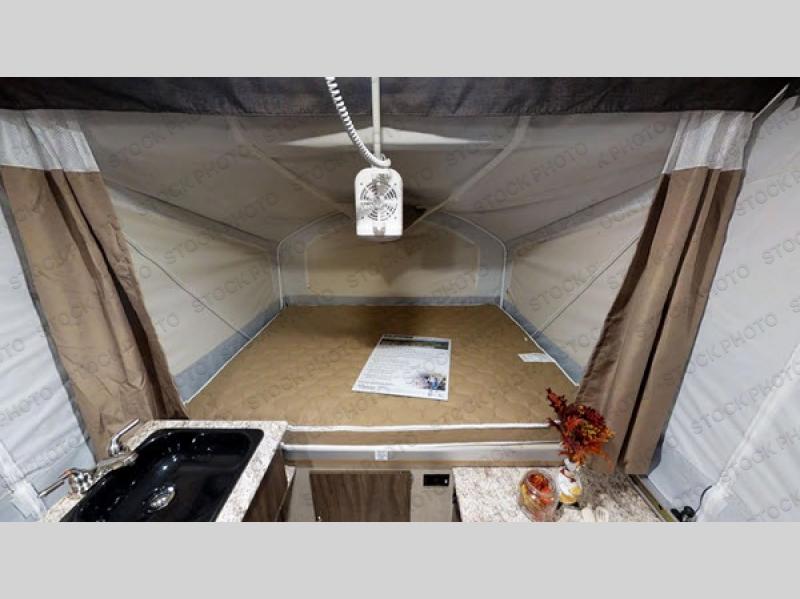 It's time to camp comfortably above ground in this Clipper Sport pop-up folding camper. Model 108ST Sport is easy to tow and easy to setup. You will be able to get a good night's rest on one of the two queen size insulated tent end beds after hanging out with everyone at the campsite. There is a booth dinette and a gaucho providing a place to relax, eat or even sleep for two more family members or friends. You are sure to enjoy cooking meals and washing your dishes inside when the weather isn't cooperating outdoors. Come see why this pop-up camper is a great for a family of 6!