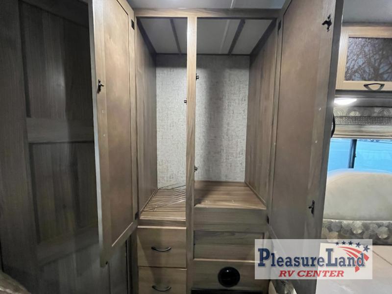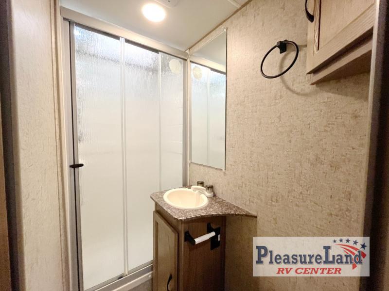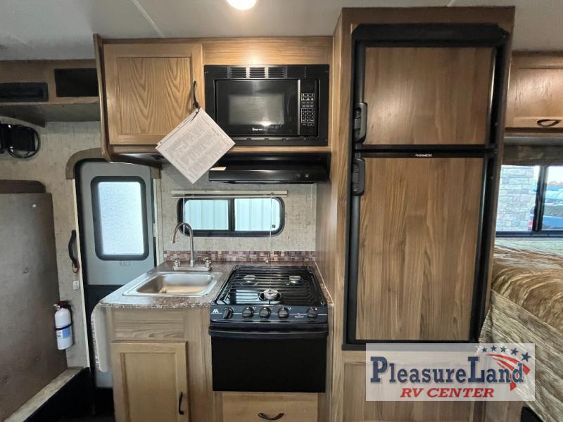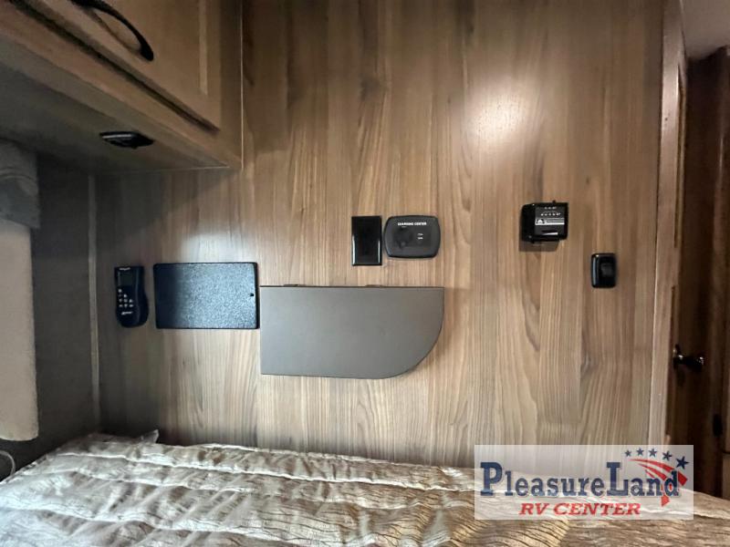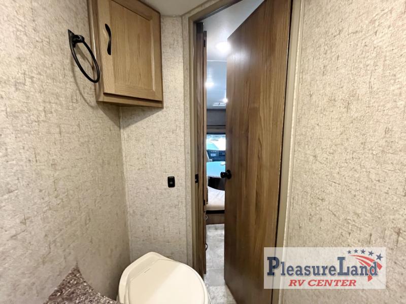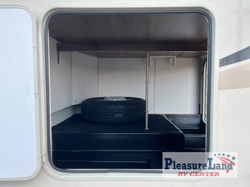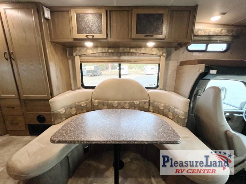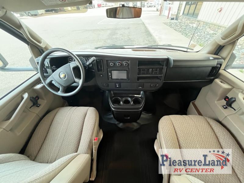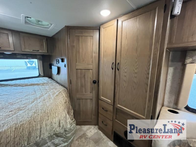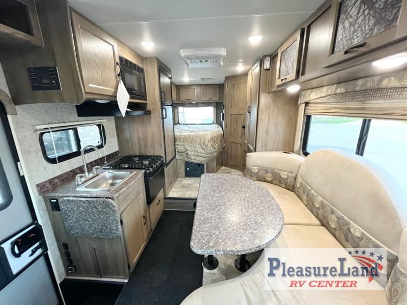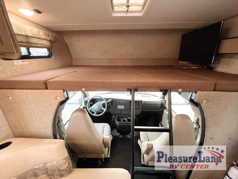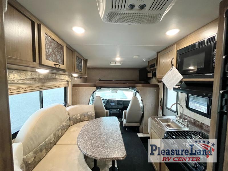 With this Freelander motorhome you will get a reliable and quality Class C gasoline coach that contains more factory-installed features than anyone else. This coach features Azdel composite walls and a fiberglass exterior to keep the entire structure lightweight. This Freelander also features larger holding tanks, like the 50 gallon fresh water tank and 68 LB propane tank, and since this model has been prepped for solar panels, it makes it easier for you to go off-grid whenever you choose to do so. Inside you will enjoy a spacious interior that includes Coachmen's Even-Cool AC with residential duct work which will provide you with a much quieter and more efficient way to cool things down in warmer weather. LED lighting and high-quality furnishings give this coach a touch of elegance, and the 1 1/2" transition step from the cab to the coach makes moving back and forth between the two much easier. It also aids in allowing passengers seated in the rear to see out of the large front window.