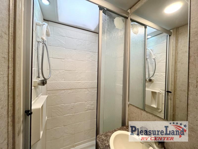 When you travel the country in this Freelander Class C gas motorhome, you will be traveling in a vehicle that you can trust. With its ability to sleep six people during any trip, you can rest confidently and comfortably each night, and your children will look forward to bedtime because they will have the chance to sleep in the bunk over the cab. All of your toiletries and camping necessities will fit securely in the ample overhead cabinet space that is provided throughout the coach, and the double-door refrigerator will keep any perishable items from spoiling.