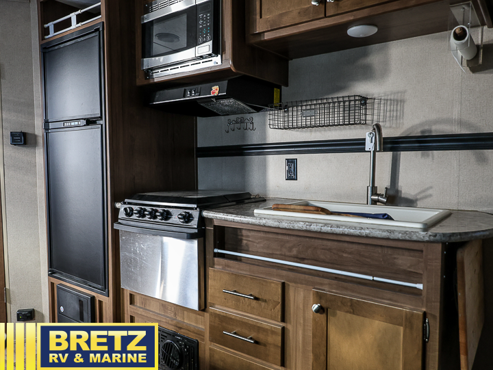 This Aspen Trail travel trailer is perfect for a couple or smaller family that enjoys traveling with their own accommodations. Just imagine drinking your morning cup of coffee at the dinette while looking out the windows. You can start thinking about which outdoor activity you will do next. This model 1900RB allows you to sleep in a comfortable bed, make meals in the kitchen, and get cleaned up in a full bath. Having full bathroom and kitchen amenities allows you to travel to your favorite campground, fishing hole, or to your grandkids' away games without missing any at-home amenities. Take a look, you will be glad you did.