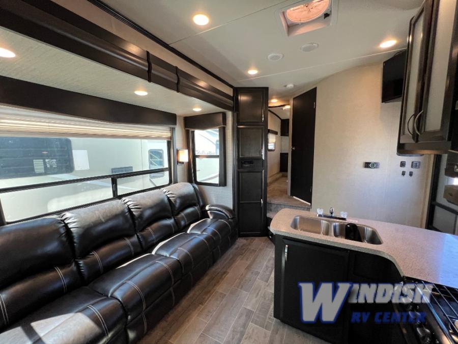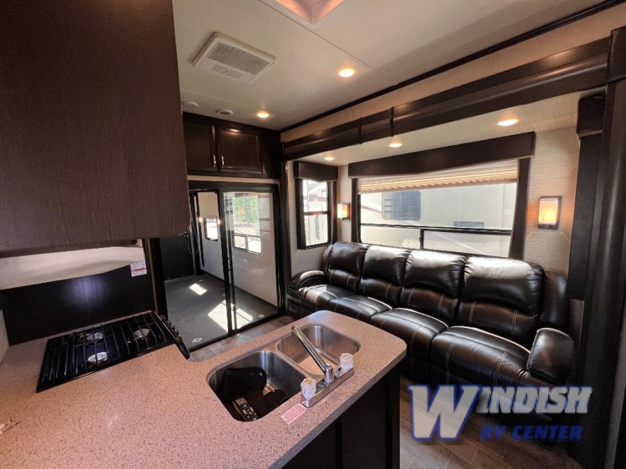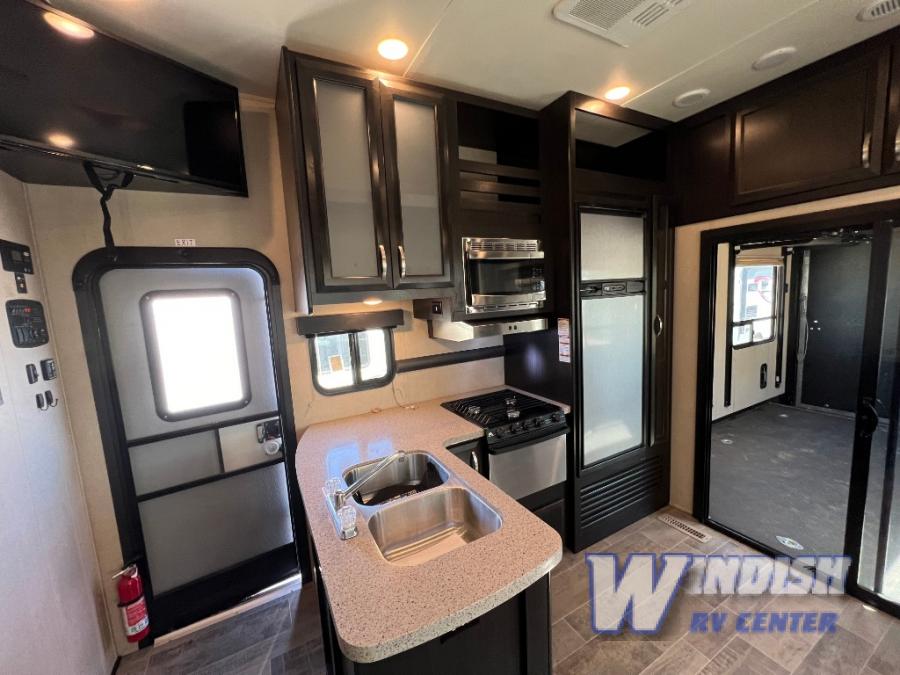 With any Triton fifth wheel toy hauler by Dutchmen RV you will enjoy the luxurious interior as well as the garage features including the spring assist ramp door, the 30 gallon gasoline pump station to keep your toys fueled all weekend long, the Tuff ply garage flooring for durability, and 2,500 pound tie downs to secure your toys on the go. Inside each model there is an LCD HDTV, upgraded residential furniture, solid surface countertops, and a stainless steel kitchen sink. You can be an active and adventures person but love the details of fine living in a Triton fifth wheel toy hauler. It's time to stop dreaming about adventure and luxury, and start living it!