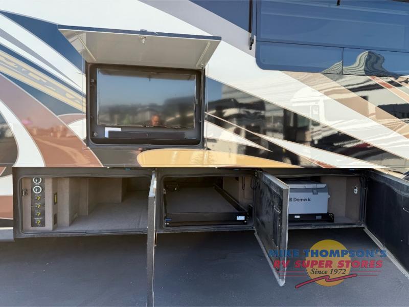 Call Kevin Fossum at Mike Thompson's RV 24/7 on my cell @ 714-869-7090! FIREPLACE – DOUBLE SINK IN BATHROOM! The 2018 Entegra Anthem 42DEQ is clean with low low miles. It is one of the most popular floor plans and has 4 deep slide outs that provide a spacious living space. It has all of the options you would expect including; LCD TVs, electric awning, plenty of storage and so much more.