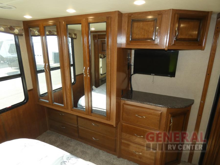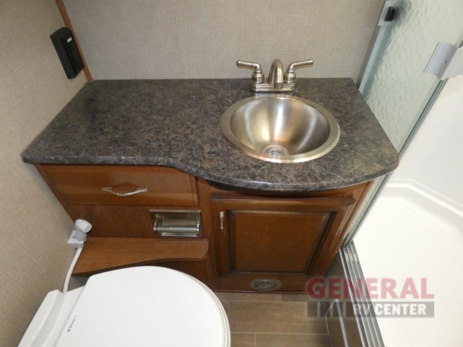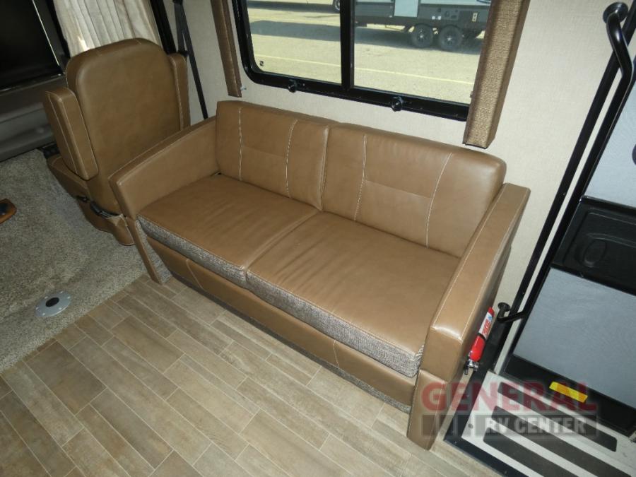 Whether you plan to go on a longer camping trip at a nearby campground, or you want to travel across the country, this Flair 30P is ideal for you! With double slide outs you can easily move throughout this unit. In the combined living and kitchen area you can easily visit with your friends and family at the 66" jack knife sofa and you can enjoy your meals at the 41" x 70" facing dinette or if you need additional sleeping space at night you can convert the dinette into a bed. The rear bedroom has a king bed with an Eurotop mattress.