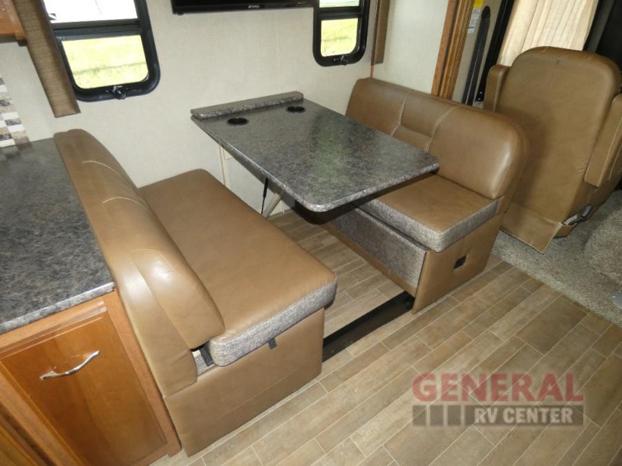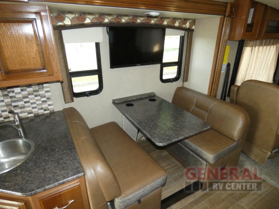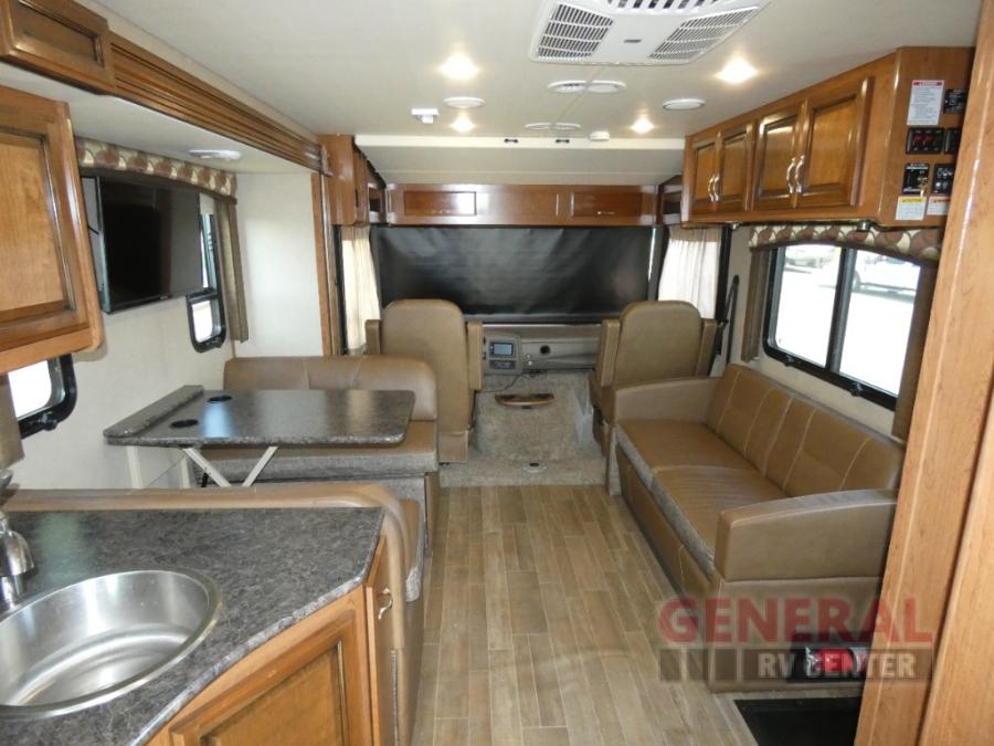 Come start any vacation with a Fleetwood Flair class A motor home. You will love the spacious interiors plus there is exterior storage so you will have plenty of room for all of your gear! Inside each model you will find high-gloss cabinets plus comfortable seating. The fully equipped kitchen allows you to prepare the meals that you love best! If you prefer more time outdoors then with the touch of a button you can set up the power awning and enjoy plenty of shade or at night you can sit and visit a little bit longer since the awning has an LED light strip.
