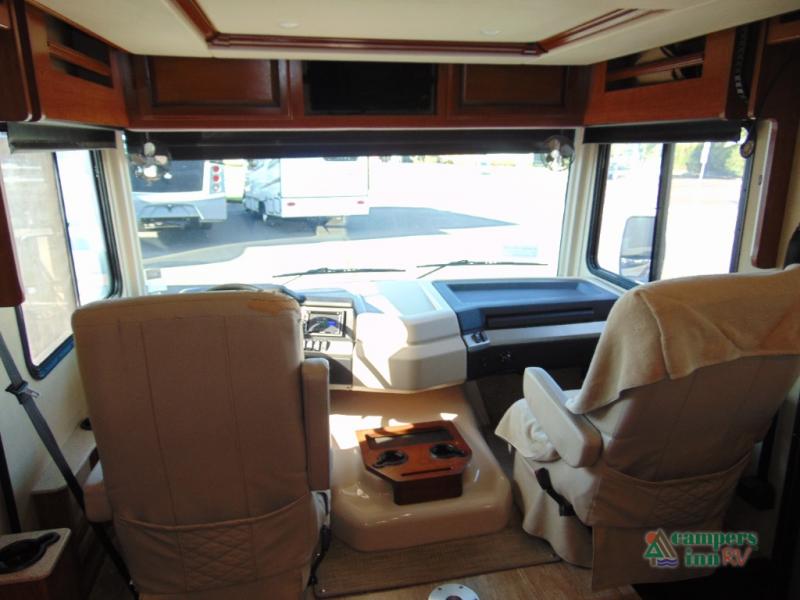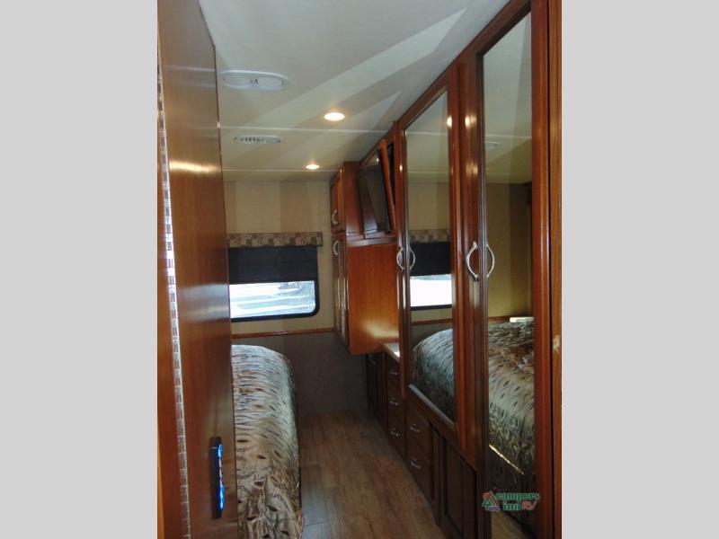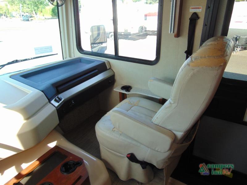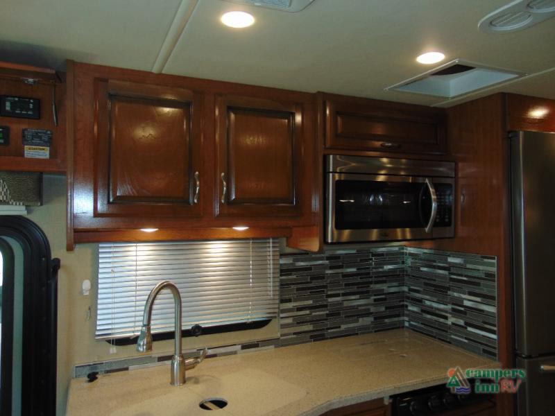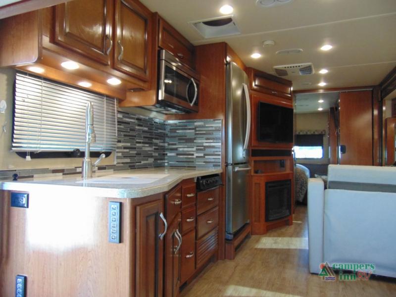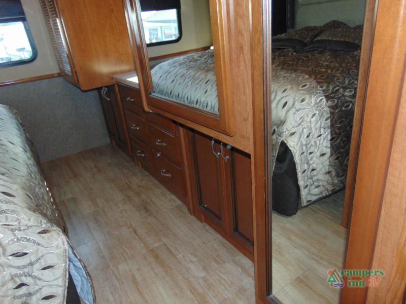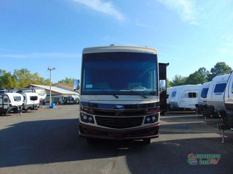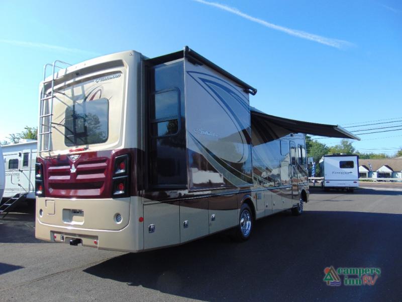 Get ready to travel in luxury and camp in comfort when you choose a Southwind class A motor home by Fleetwood! These models have an Illumaplex electronic control system with app control, plus there are residential features from the soft-touch furniture to the solid-surface countertops. The kitchens have adjustable cabinet shelves so you can maximize the space to your needs, plus there is a deep double-bowl under-mount stainless steel sink. Enjoy your daily view from the oversized windows and at night come find rest in the bedroom. If you prefer to read before drifting off to sleep, then you will find reading lights in the overhead cabinets. For a longer vacation that has the comforts of home, choose a Fleetwood Southwind!