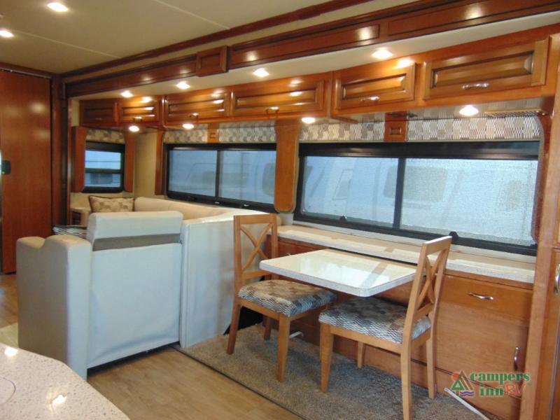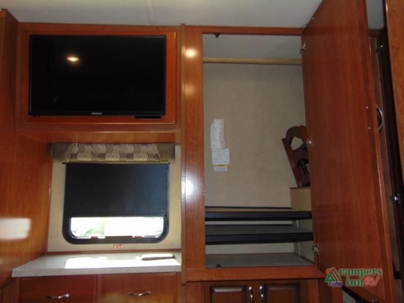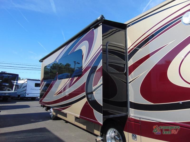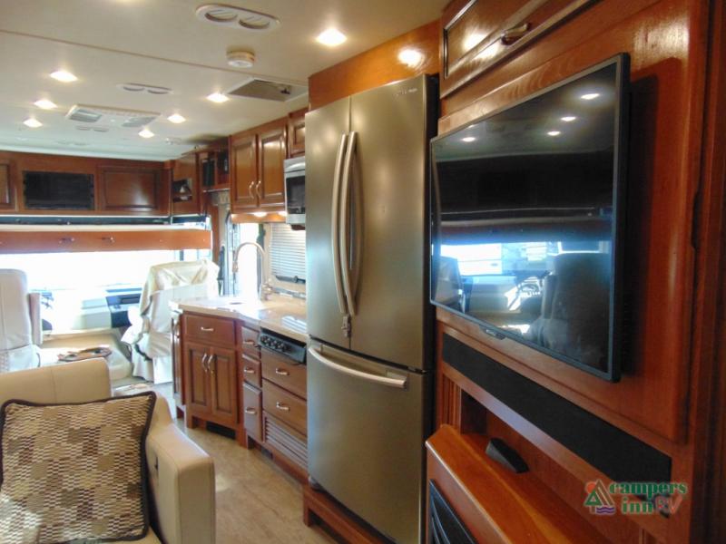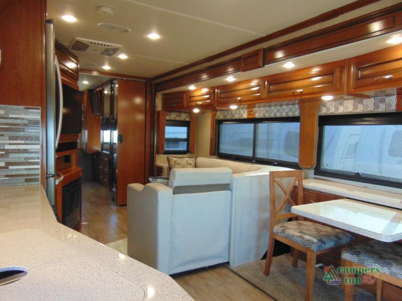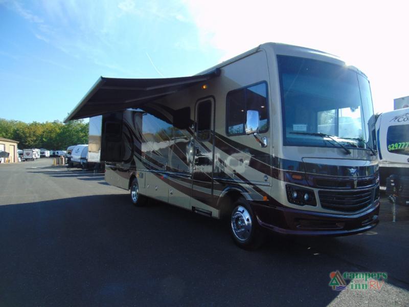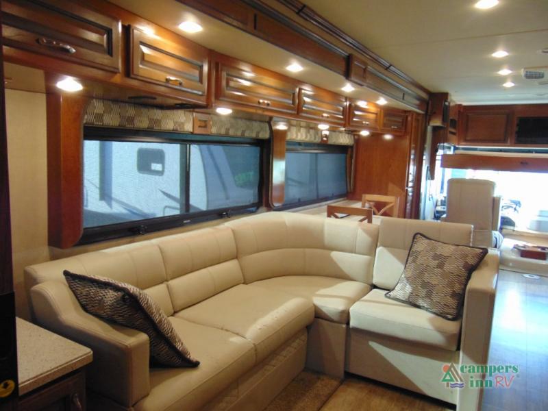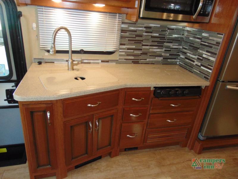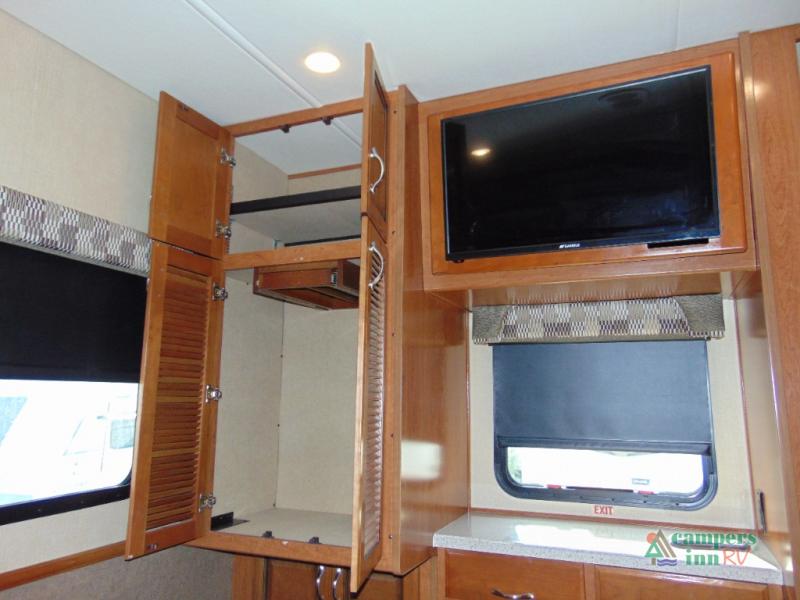 Get ready to travel in luxury and camp in comfort when you choose a Southwind class A motor home by Fleetwood! These models have an Illumaplex electronic control system with app control, plus there are residential features from the soft-touch furniture to the solid-surface countertops. The kitchens have adjustable cabinet shelves so you can maximize the space to your needs, plus there is a deep double-bowl under-mount stainless steel sink. Enjoy your daily view from the oversized windows and at night come find rest in the bedroom. If you prefer to read before drifting off to sleep, then you will find reading lights in the overhead cabinets. For a longer vacation that has the comforts of home, choose a Fleetwood Southwind!