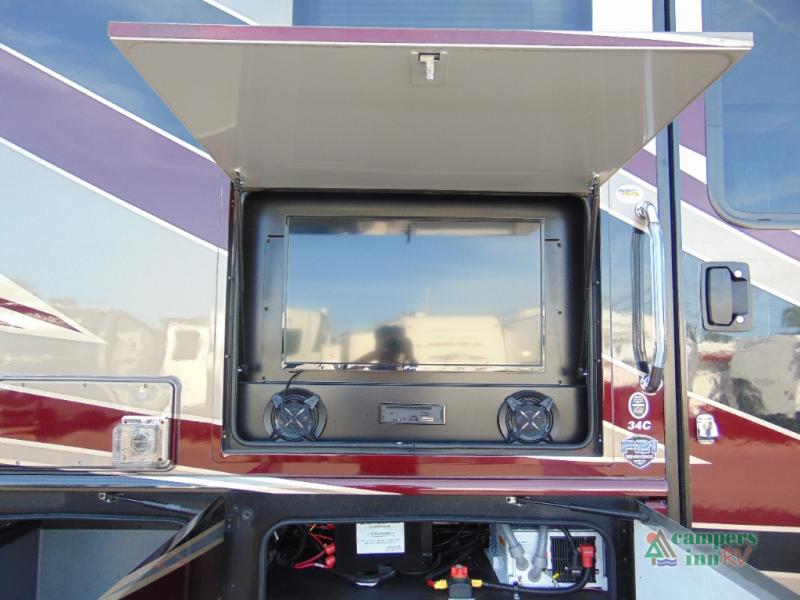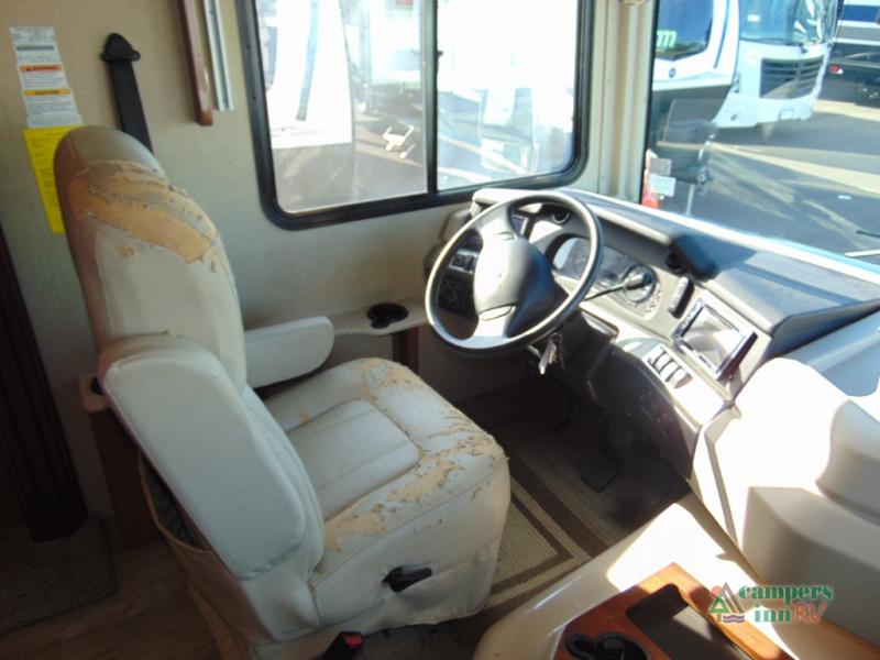 Let this double slide out Southwind 34C take you and your family to the destination of your choice! There are plenty of comforts throughout this motor home, so sit back, relax, and enjoy your time away from home. Come enjoy your morning cup of coffee at the pedestal table which is located between the driver and passenger seat. Within the slide out along the roadside there is a 42" x 72" facing dinette and an L-sofa. Across from the sofa, along the outside wall of the bathroom there is a 40" LED TV and an electric fireplace which is great for those chilly evenings!