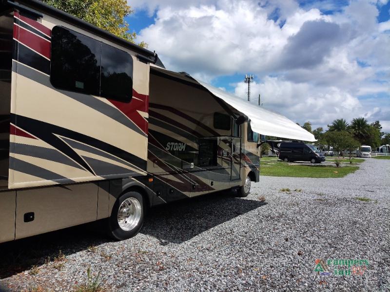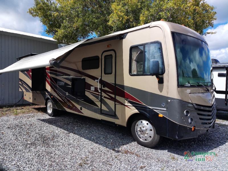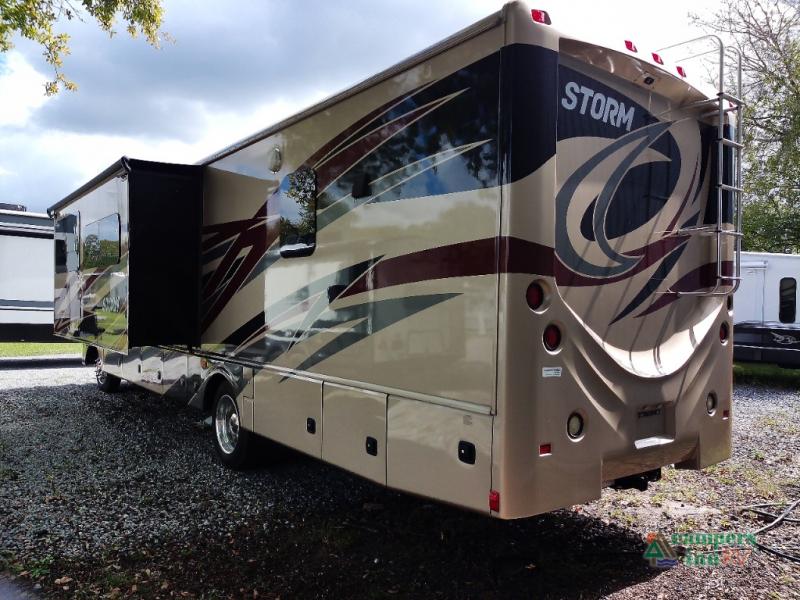 This Fleetwood Storm class A gas motorhome model 34S features one and a half baths, complete kitchen and bath accommodations, plus a few residential features that you are sure to love!