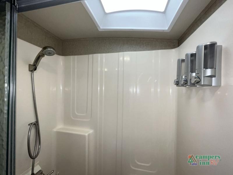 With any Forest River Cedar Creek Hathaway Edition fifth wheel you will find Nev-R-Adjust brakes which allow for improved stopping power in half the distance. There is also an E-Z Lube rubber equalization system and E-Z Lube heavy duty axles. In the bedroom you will find extra wide mirrored closet doors plus a walk-in closet and the radius ceilings give added headroom. The kitchen is everything that you would expect to find and more from the stainless steel 30" over the range microwave, to the recessed stainless steel large oven, you won’t be disappointed! If you prefer a bit more conveniences throughout then you will enjoy the Hathaway Edition Package which includes a 36" fireplace with remote and storage, solid surface LG counter tops with an oversized stainless steel sink, Congoleum Carefree designer flooring, On Demand hot water heater, and so much more!