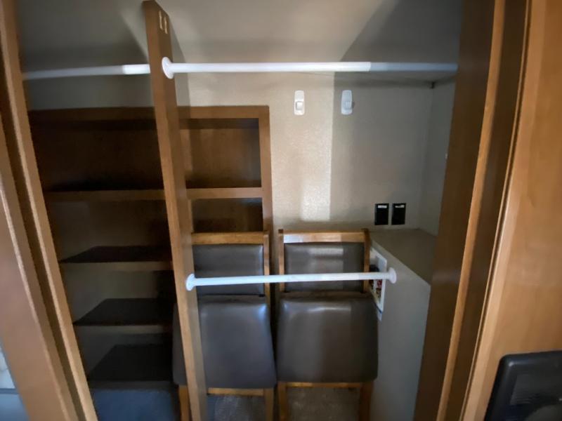 Bring all of the comforts of home with you when you choose to camp with this triple slide out Cedar Creek Hathaway Edition 36CK2 fifth wheel. In the kitchen there is plenty of work space to prepare your favorite meals. Clean up is a breeze at the island. Here you will find a double sink plus if you choose to add the optional dishwasher then your time cleaning up will be cut in half! When you are ready to call it a day, then head up to the private front bedroom. Here you will find a king bed and plenty of storage with the large wardrobe and dresser. This room has also been prepped for a washer and dryer so now you can easily keep up with your laundry while you are away from home!