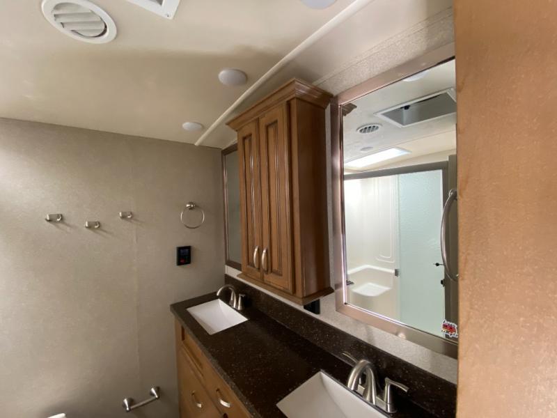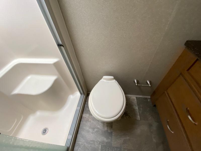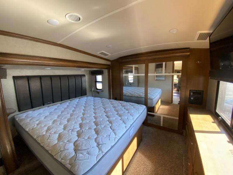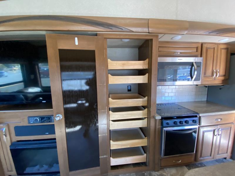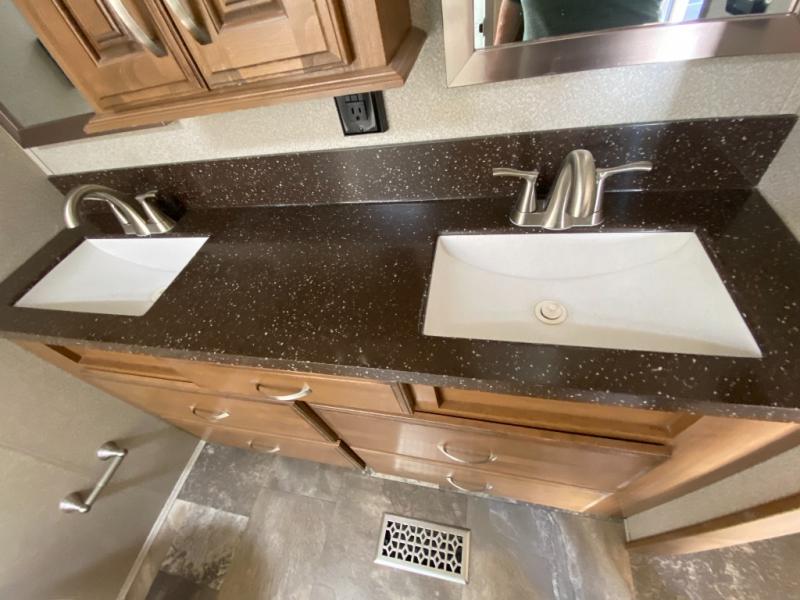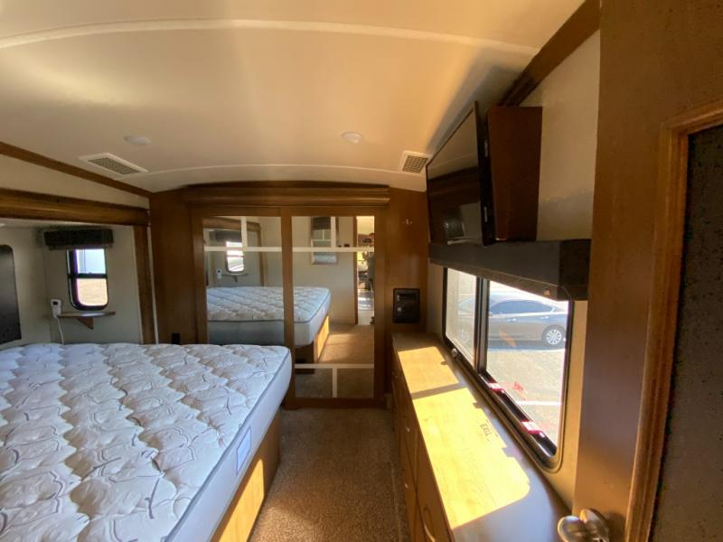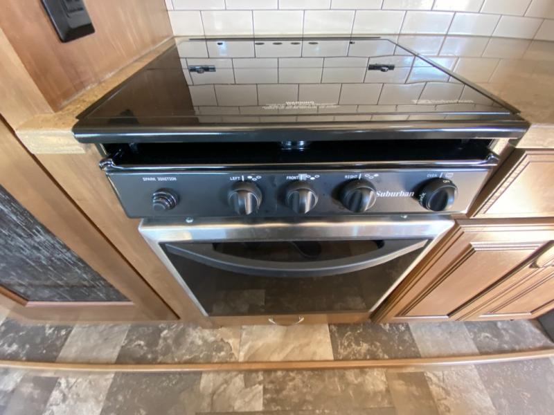 With any Forest River Cedar Creek Hathaway Edition fifth wheel you will find Nev-R-Adjust brakes which allow for improved stopping power in half the distance. There is also an E-Z Lube rubber equalization system and E-Z Lube heavy duty axles. In the bedroom you will find extra wide mirrored closet doors plus a walk-in closet and the radius ceilings give added headroom. The kitchen is everything that you would expect to find and more from the stainless steel 30" over the range microwave, to the recessed stainless steel large oven, you won’t be disappointed! If you prefer a bit more conveniences throughout then you will enjoy the Hathaway Edition Package which includes a 36" fireplace with remote and storage, solid surface LG counter tops with an oversized stainless steel sink, Congoleum Carefree designer flooring, On Demand hot water heater, and so much more!
