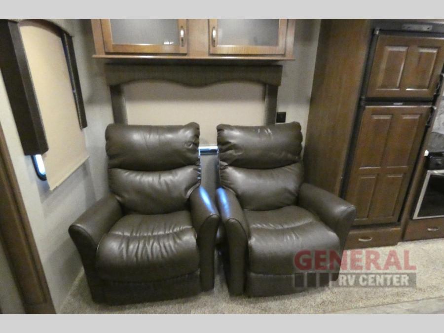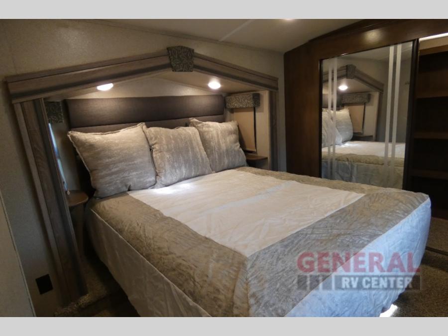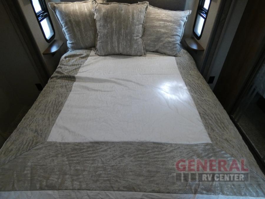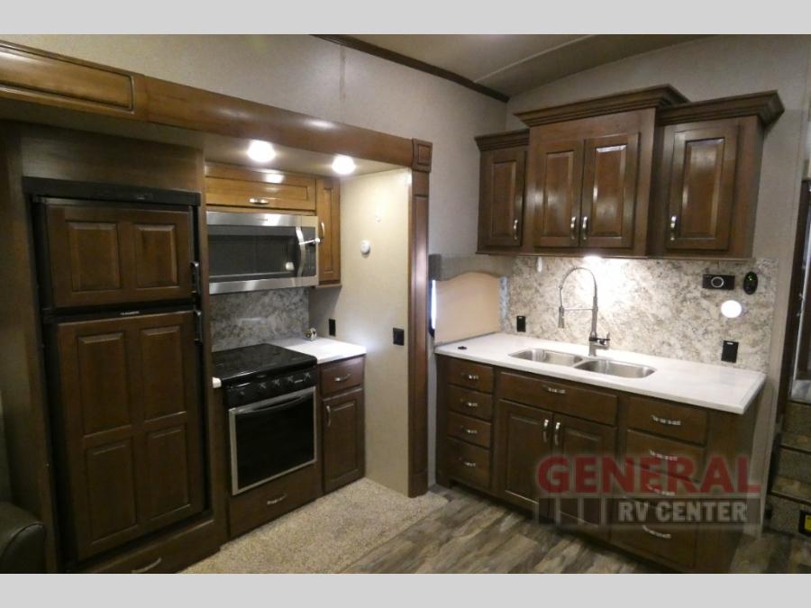 With any Forest River Cedar Creek Silverback Edition fifth wheel you will find cathedral slide rooms in the main and bedroom slides which help to open up the living space throughout each model. You will enjoy a good night’s rest of the Serta residential mattress plus the deluxe blackout roller shades add the privacy you desire. The kitchen is everything that you would expect to find and more from the recessed stove top with glass cover and front, full panel backsplash, to the stainless steel under-mounted sink, you won’t be disappointed! The 36" electric fireplace, Congoleum Designer Carefree plank flooring and Shaw carpeting are just a few of the other comforts you will find throughout each model and more!