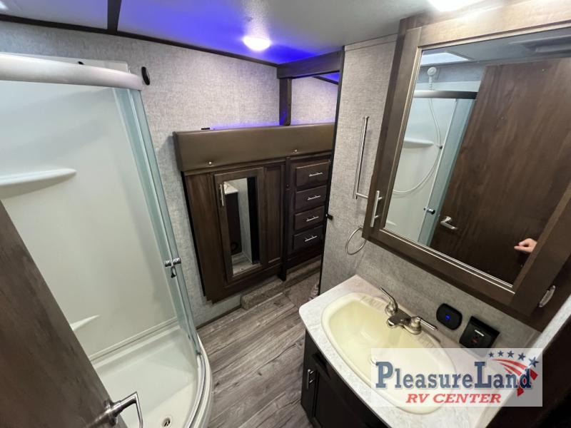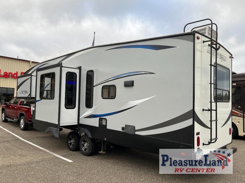 From its automatic leveling system to its 6' 4" slides with oversized panoramic windows, this fifth wheel by Forest River provides luxurious conveniences at an entry level price point. This structure has been designed so that even light duty trucks can tow it, yet the interior portion is still packed full with high-class amenities that will enhance your traveling experience, like the high circulation ceiling fan that adds to the character and functionality of the living area. Not only will you be thoroughly impressed with this RV, but so will everyone else that sees it because RV Pro has awarded this Arctic Wolf their "Best of Show" title.