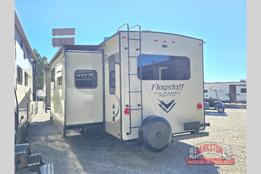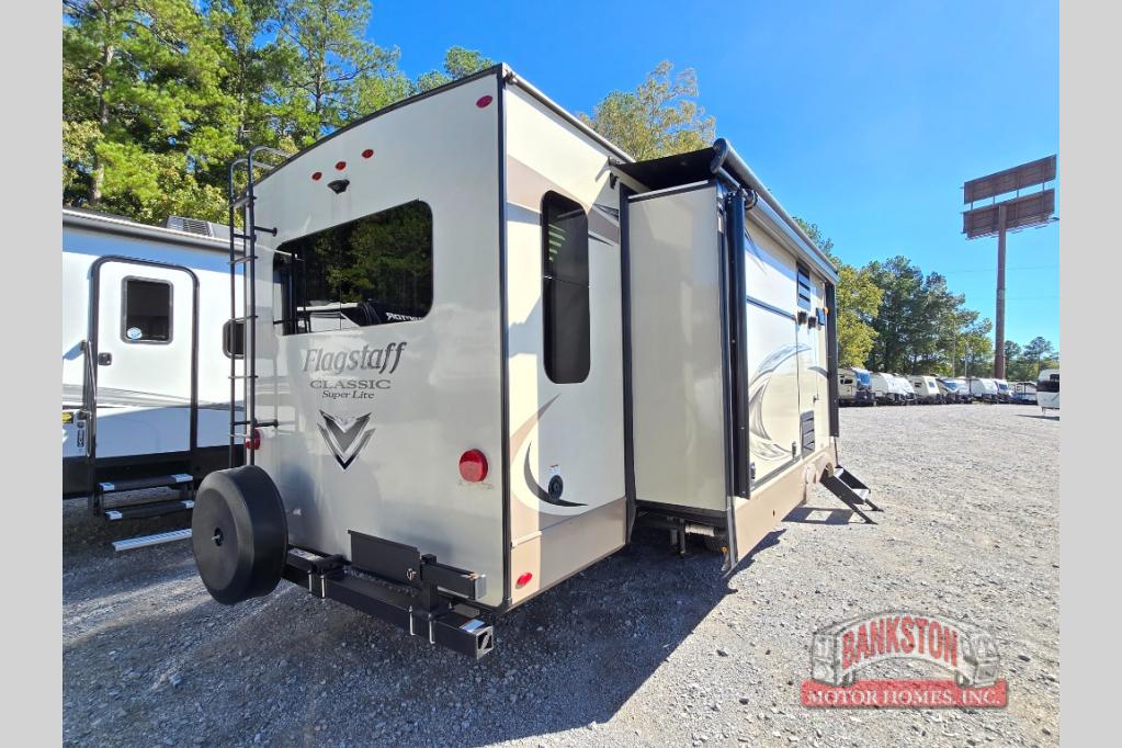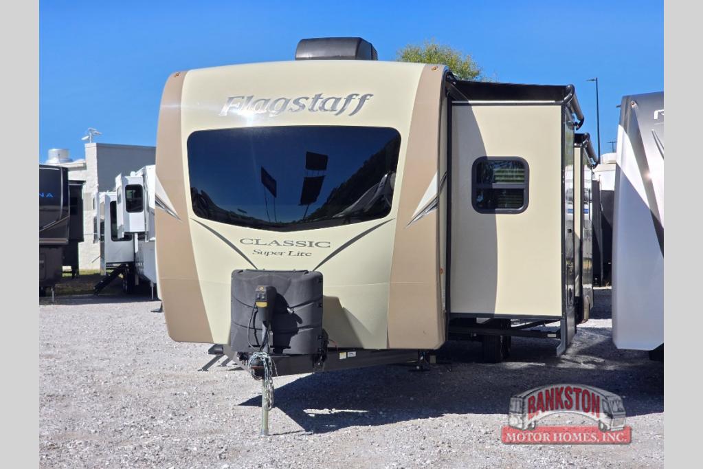 Beautiful and spacious interiors are what you will find throughout each Flagstaff Classic Super Lite travel trailer. Each floor plan is open and inviting. You will find Driftwood interiors with a decorative cove trim along the ceiling and overhead cabinets. With the WiFi Ranger Wifi Booster you can easily stay connected with your electronic devices. There is also a digital AM/FM/DVD with "Bluetooth" technology. Along the exterior there is a radius roof with vaulted interior ceilings, a one piece seamless roofing membrane, a power awning, plus so much more! The Standard Package is also available on each model which features an upgraded 22" gas oven, solid surface Corian kitchen countertops, a residential Serta mattress upgrade, and thermostatically controlled heated holding tanks, plus so much more!