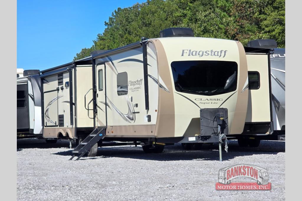 Whether you are looking to use this travel trailer for weekend camping trips or for a week-long vacation, you can plan to make plenty of memories with this Flagstaff Classic Super Lite 832OKBS. Inside, you will find seating for everyone in the combined living and kitchen area including on theater seating. You might even make the kids play a board game at the free standing dinette. There is a kitchen island with a countertop extension for even more space to make meals. The views from the front windshield in the bedroom will have you relaxing on the Serta bed more often than usual. Outside, you will surely appreciate the shade from the 11' and the 13' awnings, plus you can easily fix a snack at the outside kitchen or on the gas grill.