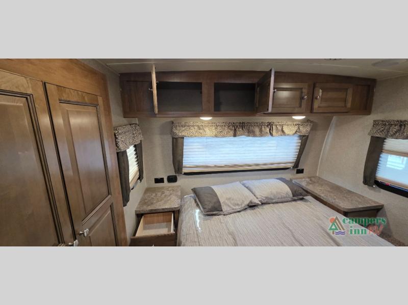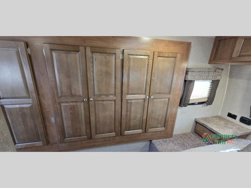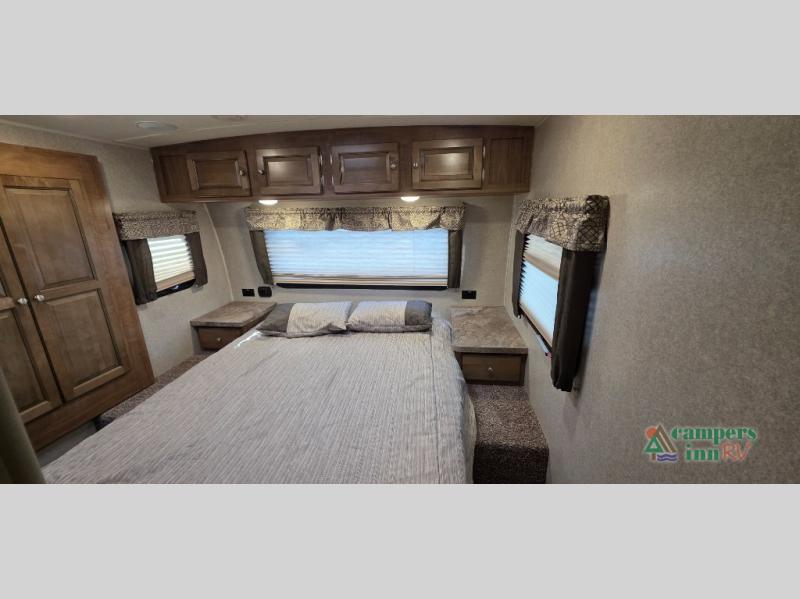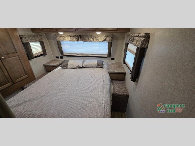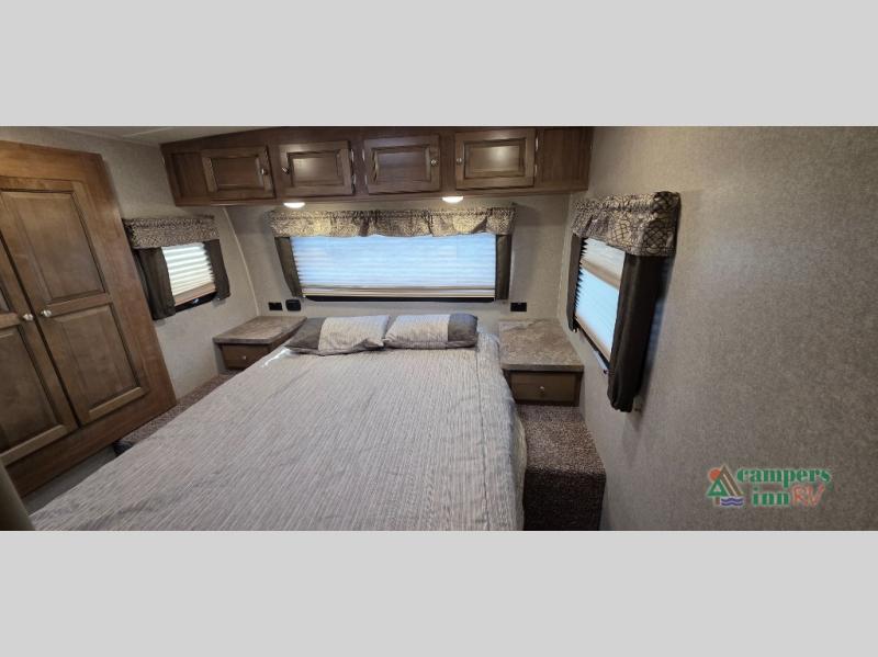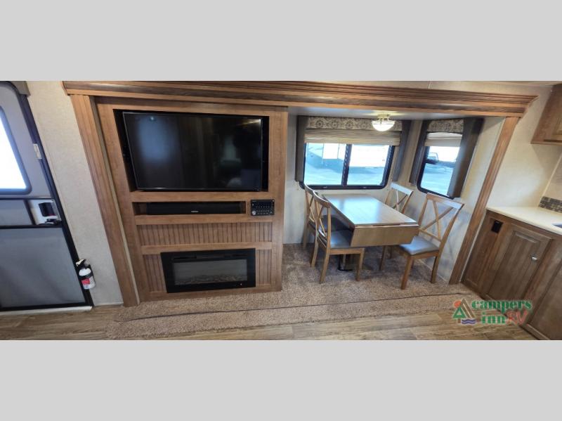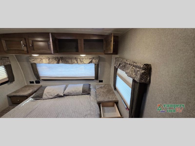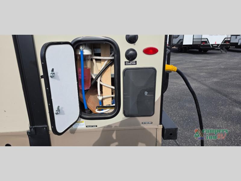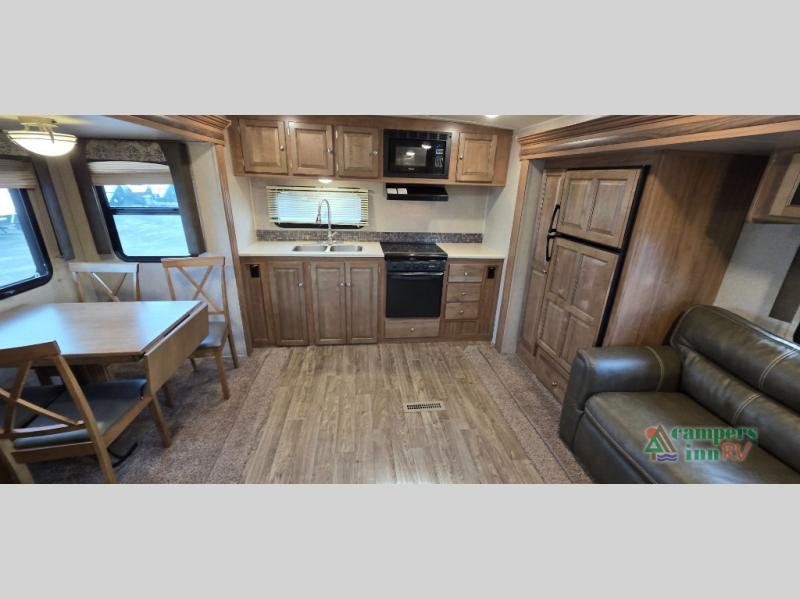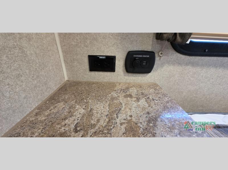 For any camping trip you will want a Flagstaff Super Lite travel trailer! These models have a beautiful Driftwood interior with solid wood and raised panel doors and drawers. You can rest comfortably in the living room at the heater theater seats with USB ports which come standard or are an optional choice per floorplan. Along the exterior there is a fully aluminum frame, radius roof with interior vaulted ceilings which gives you the most headroom, plus large dinette picture windows where you can sit and enjoy the view. The Standard Packages offer features such as a WiFi ranger WiFi booster, an enclosed underbelly, a power awning with adjustable rain dump and LED light strip, a rear observation camera prep with molded mounting plate, and so much more!