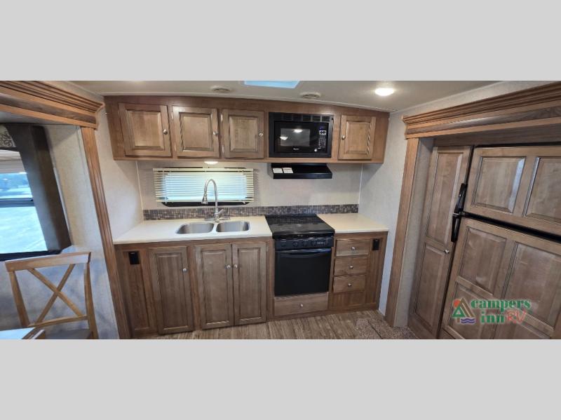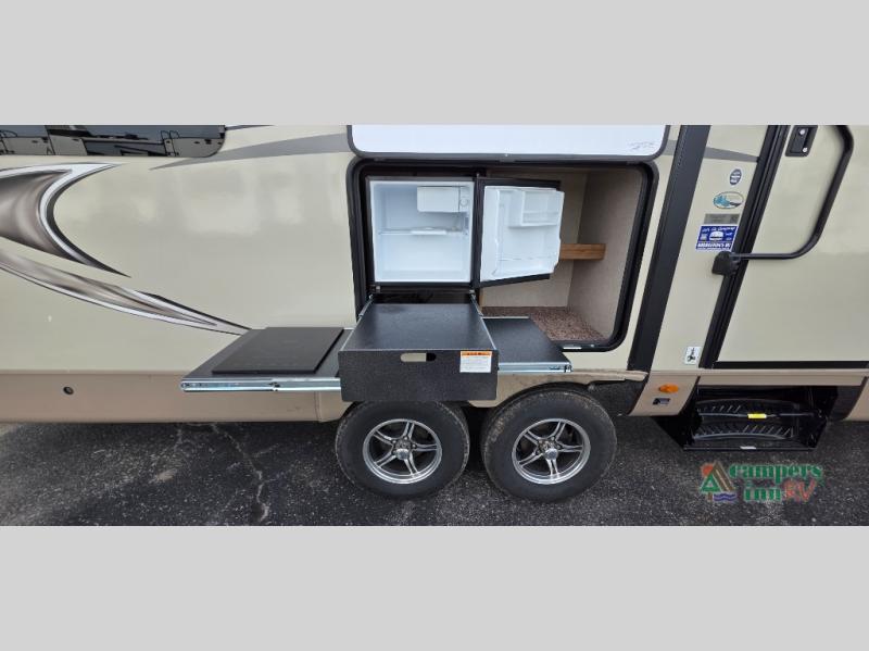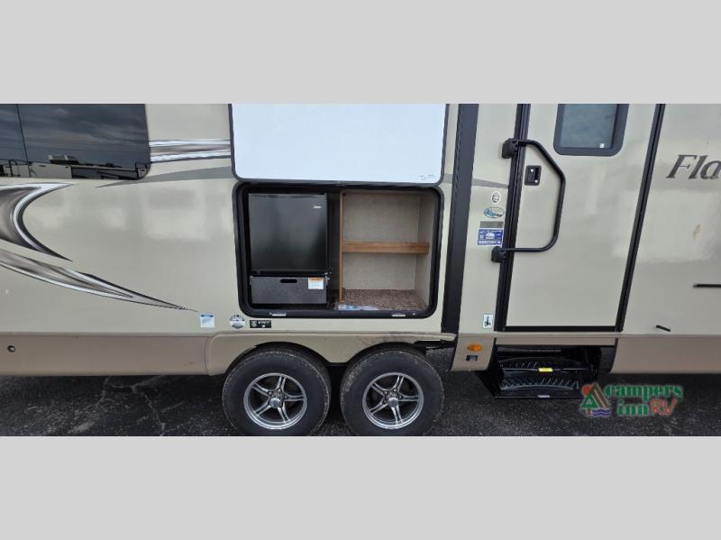 Come start your next camping trip with this triple slide out Flagstaff Super Lite 27RKWS travel trailer by Forest River. The hardest decision that you will have to make on your camping trip is where you will fix your meals - inside or outside. The mini outside kitchen features a cooktop and refrigerator, plus there is a gas grill nearby. Inside you will enjoy the spacious kitchen along the rear wall. For more counter space you can use the residential sink covers and more!