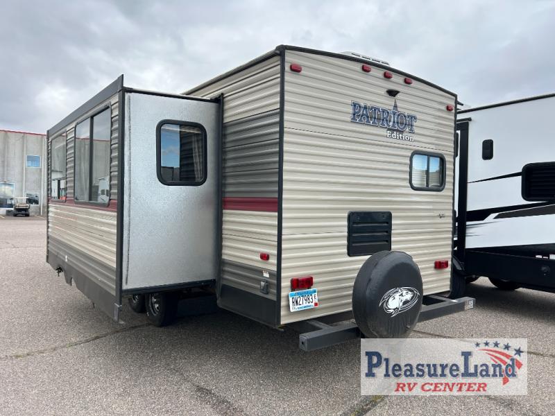 Fall in love with everything about this Patriot Edition 274RK travel trailer by Forest River. This model features a rear kitchen, front bedroom, and plenty of room for your family!