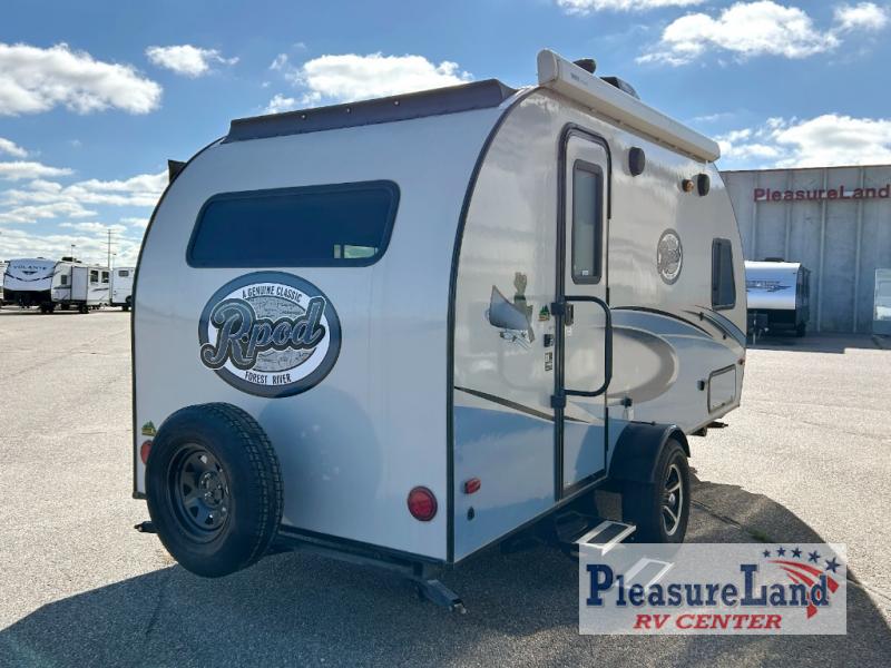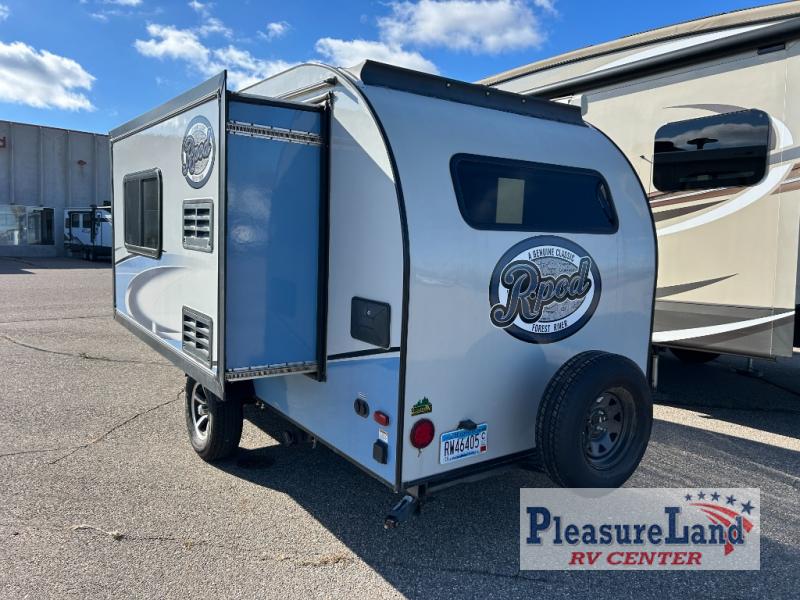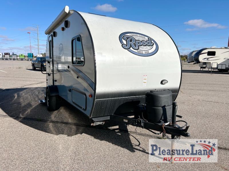 For a sturdy one-of-a-kind travel trailer, choose the R Pod by Forest River. Along the exterior you will find a two tone gel-coat fiberglass, custom tinted safety glass windows, and convenient magnet baggage door catches. Inside these models you will enjoy the Designer Carefree flooring, grey shaker style cabinets, hardwood drawer fronts with full extension ball bearing drawer glides, plus the decorative window treatments! These trailers are ready to go when you are! Come select your R Pod today!