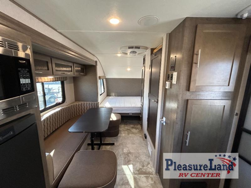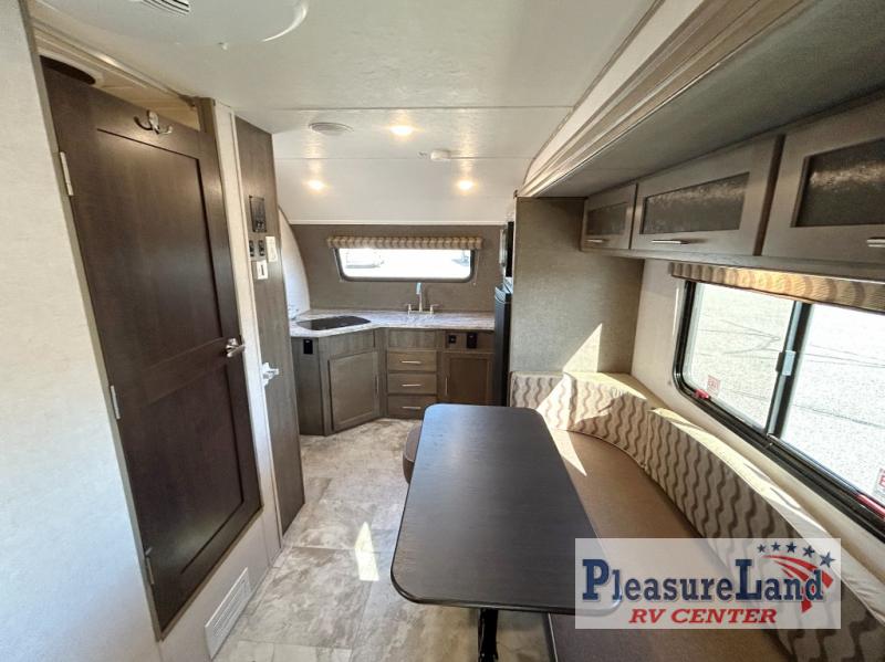 Whether your camping trips take you near or far you will want this single slide out R-Pod RP-179 travel trailer. The unique rear kitchen features extra counter space as well as a two burner range where you can whip up a snack or your meals. Enjoy your family time at the u-dinette and at night you will be impressed with how easily it is to convert this area for a sleeping spot for your kids or grandkids. Along the front there is a queen bed, and with the convenient wet bath you can get ready for your day without having to leave your trailer!