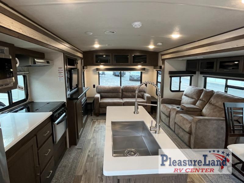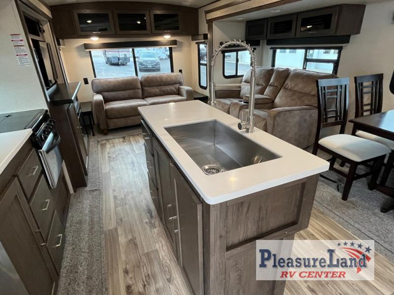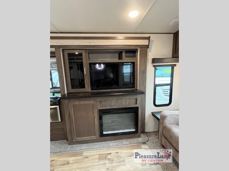 Load up your family and see just how fun camping can be with this double slide out Salem Hemisphere GLX 272RL. This model offers plenty of conveniences such as a fireplace, theater seats, an island with a sink and a high-rise faucet, plus a jumbo dinette. Outside you can enjoy the shade from the 21' awning plus there is a large pass through storage area for all of your outdoor camping gear. You can even choose to add the optional exterior kitchen which features an electric refrigerator and a sink.