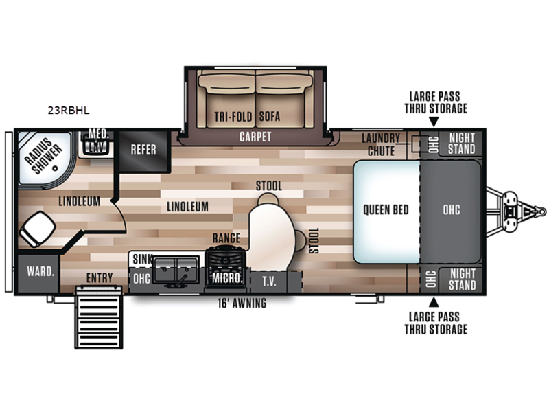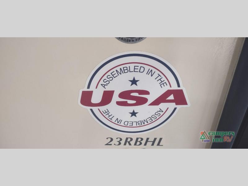 The 2018 23RBHL is part of Forest River’s Hyper-Lyte series, meaning it’s designed with lightweight construction for better towability without compromising structure. Whether you tow with a half-ton truck or a large SUV, this trailer is a breeze to handle and quick to set up at the campground.