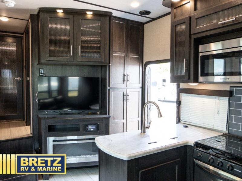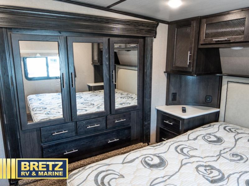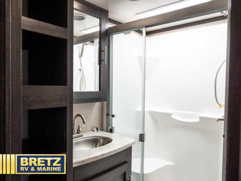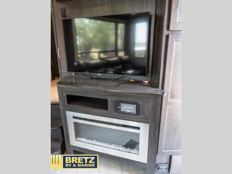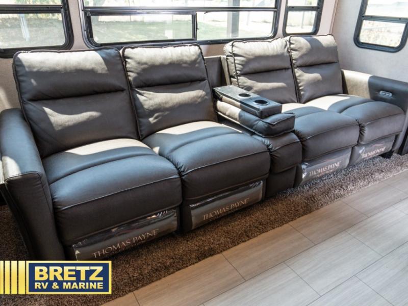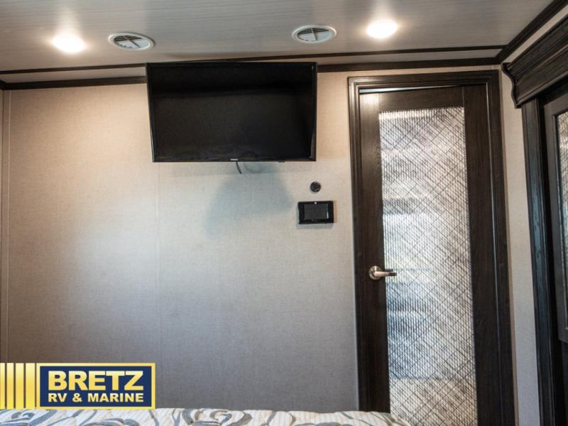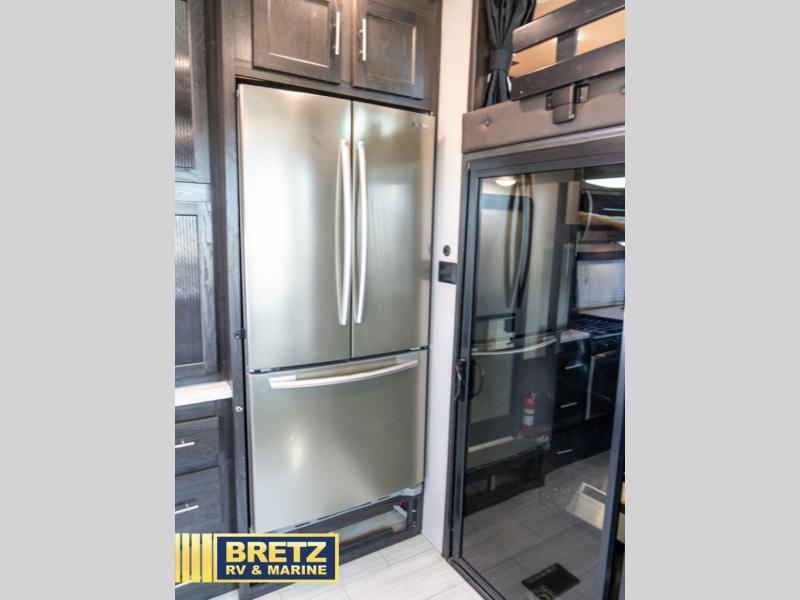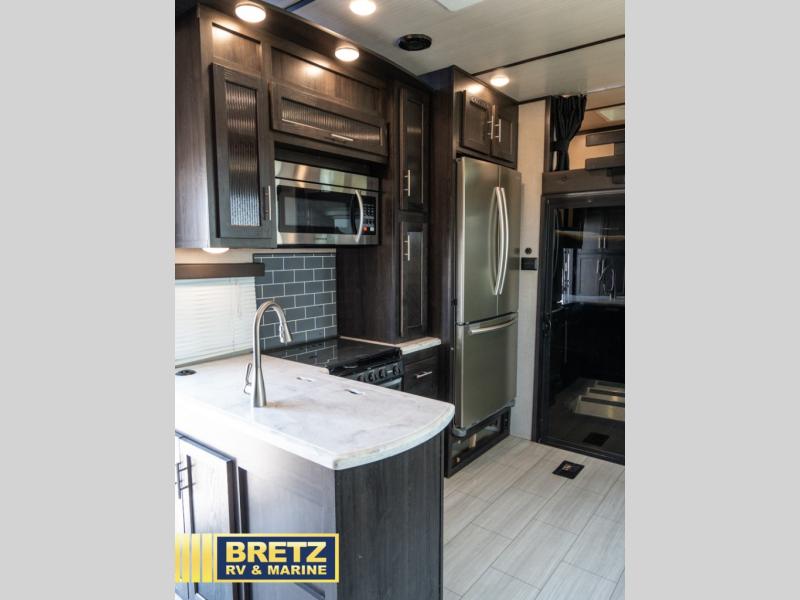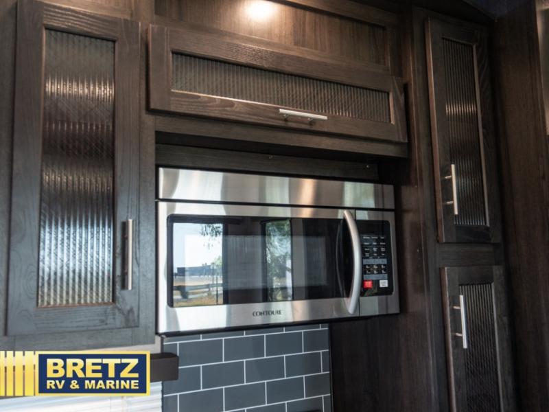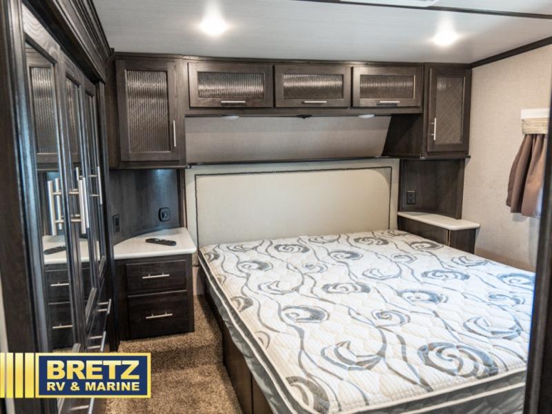 With 11' of cargo space on the XLR Thunderbolt 340AMP toy hauler fifth wheel, you can go just about anywhere and take along just about any off-road toy. This Forest River model features double slide outs, dual entry doors, a loft, king size bed, and plenty of space to enjoy your time away from home. The power recliner sofa can be used for regular seating during the day or transform it into an extra sleeping space at night. You can enjoy a cool breeze from outside without getting eaten up by pesky mosquitoes thanks to the patio door.