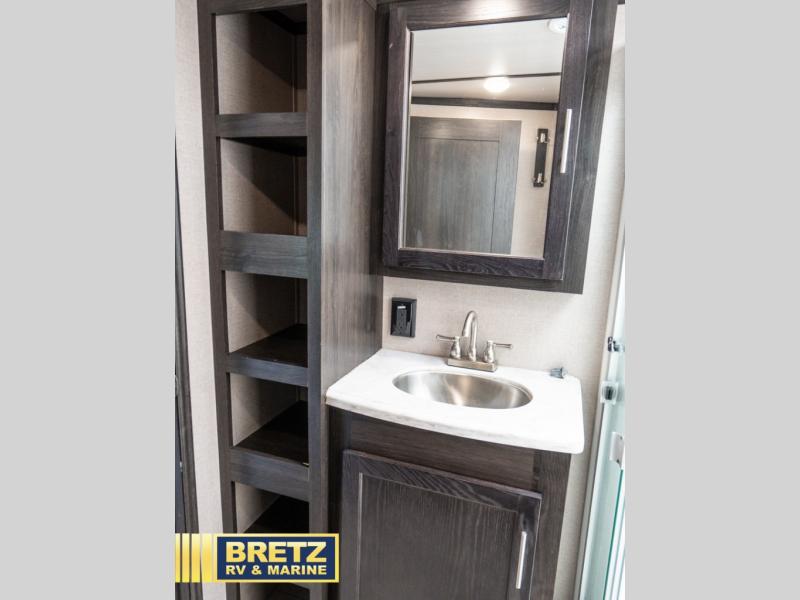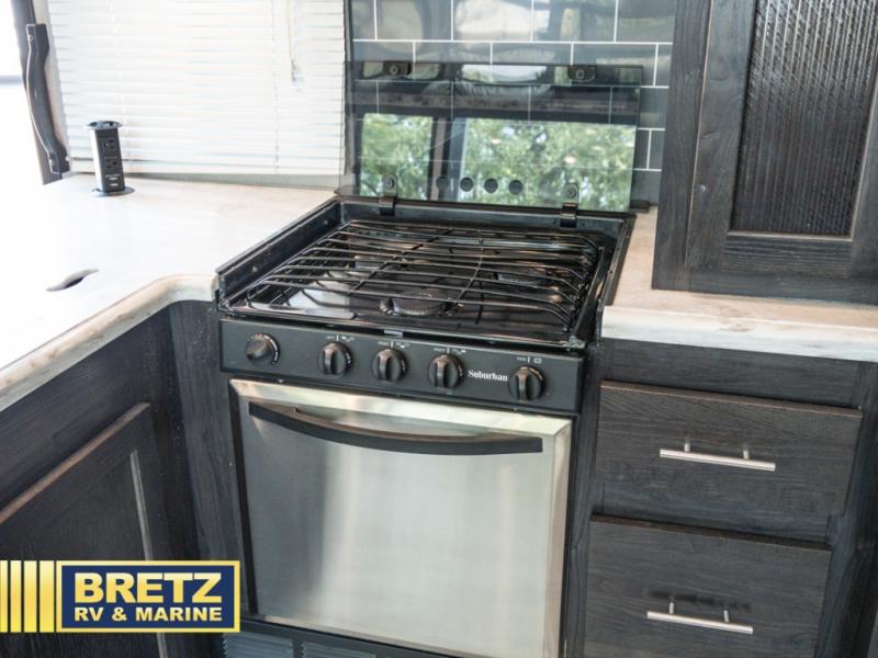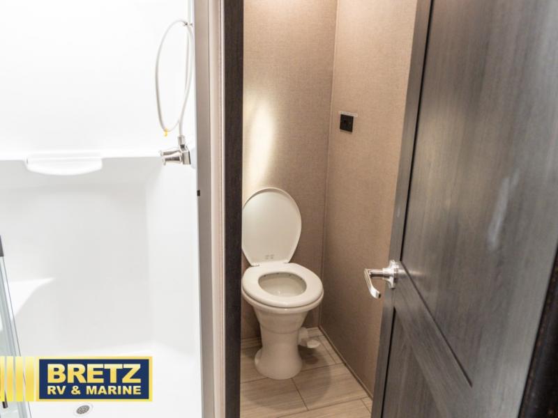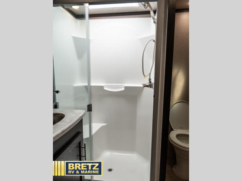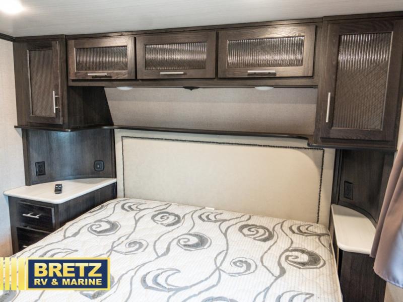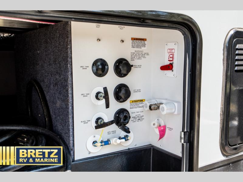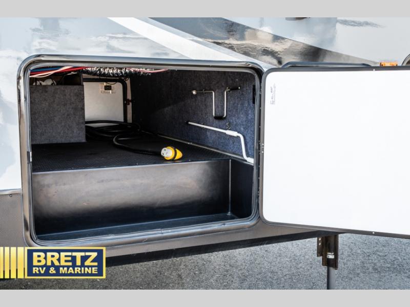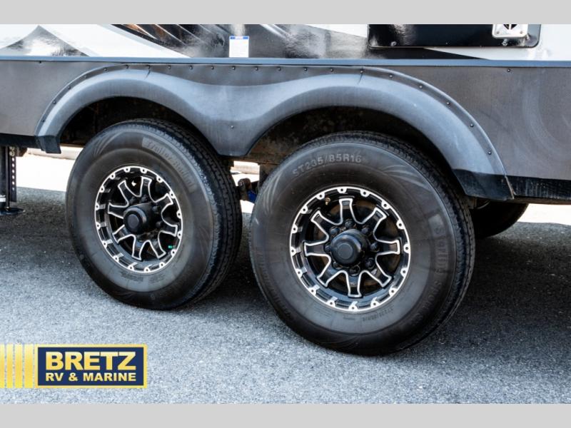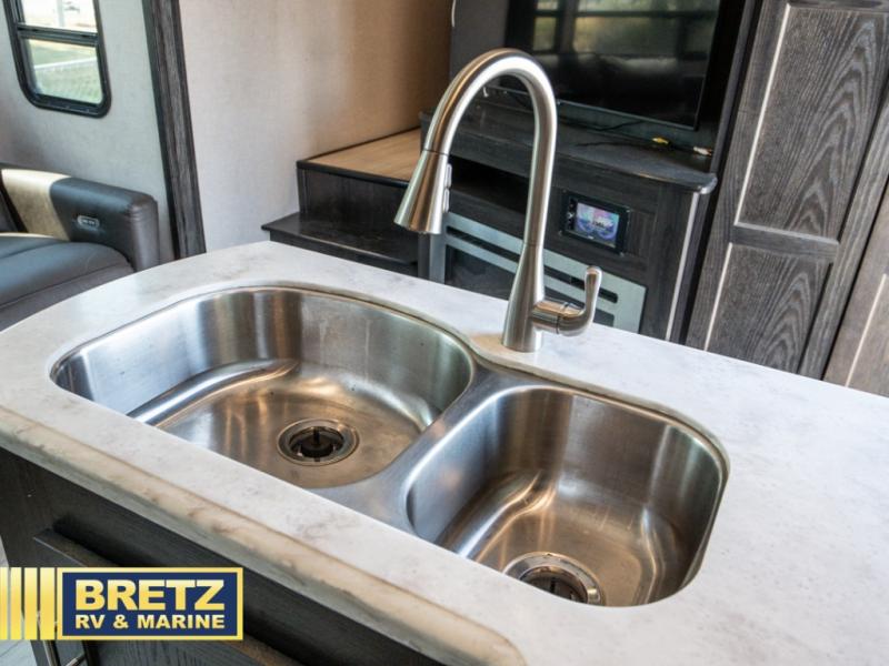 With 11' of cargo space on the XLR Thunderbolt 340AMP toy hauler fifth wheel, you can go just about anywhere and take along just about any off-road toy. This Forest River model features double slide outs, dual entry doors, a loft, king size bed, and plenty of space to enjoy your time away from home. The power recliner sofa can be used for regular seating during the day or transform it into an extra sleeping space at night. You can enjoy a cool breeze from outside without getting eaten up by pesky mosquitoes thanks to the patio door.