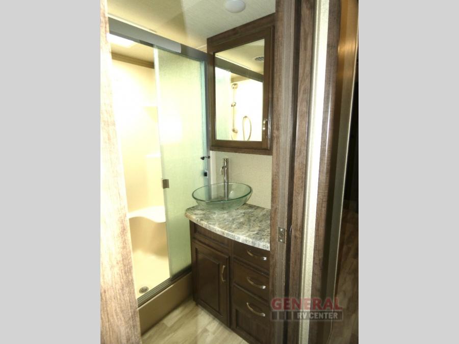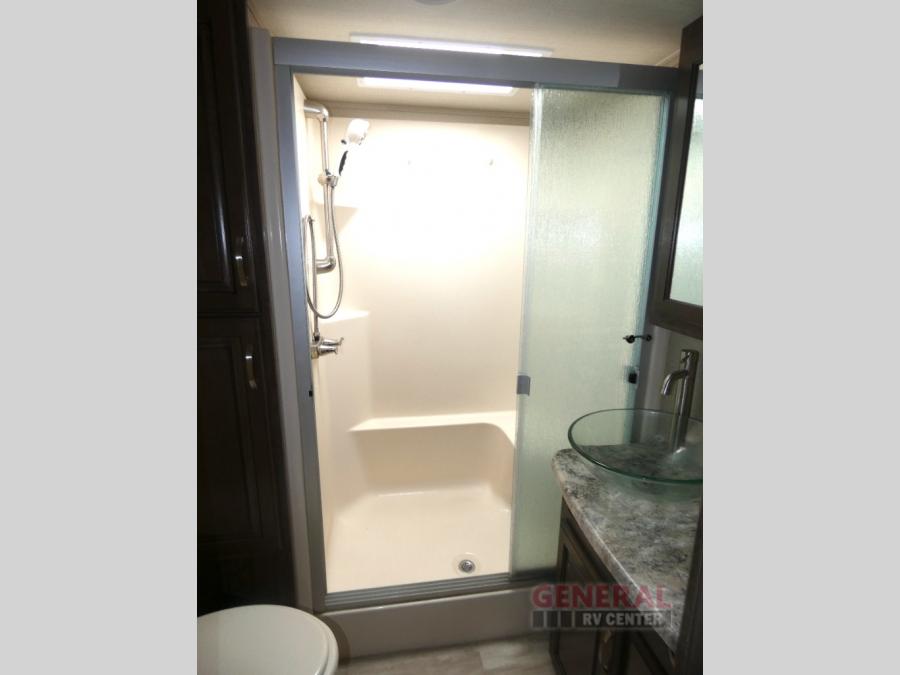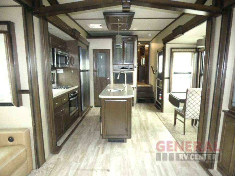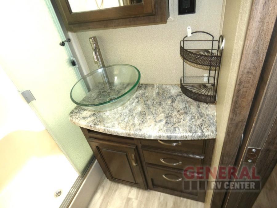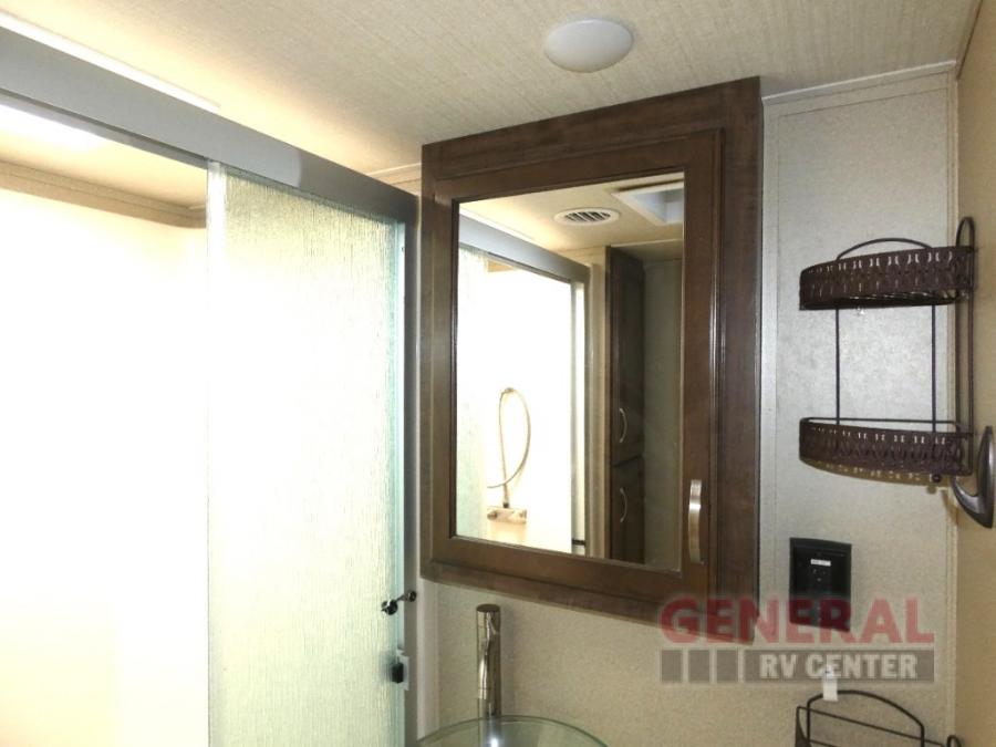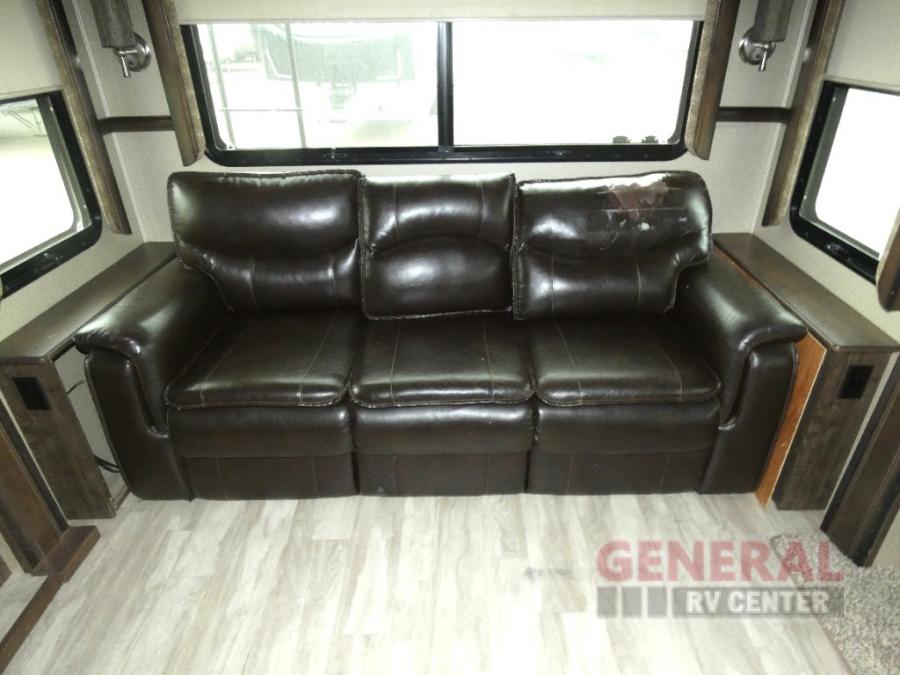 Outside enjoy an exterior LED TV and refrigerator to keep cold drinks handy. You will also love the unobstructed pass-through storage compartment for all of your outdoor camping items, plus universal docking station, and so much more!