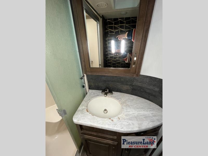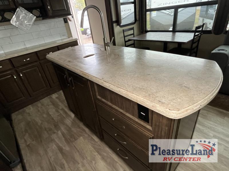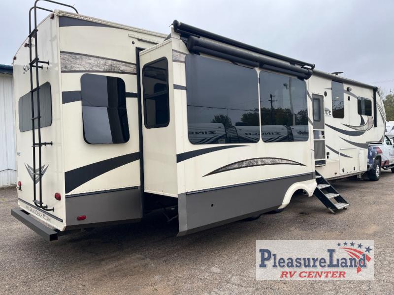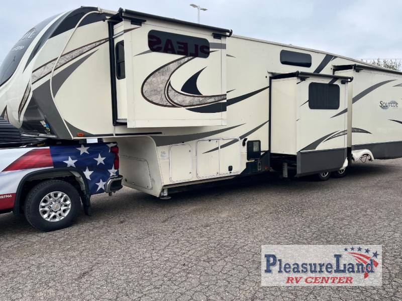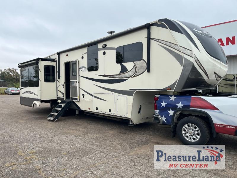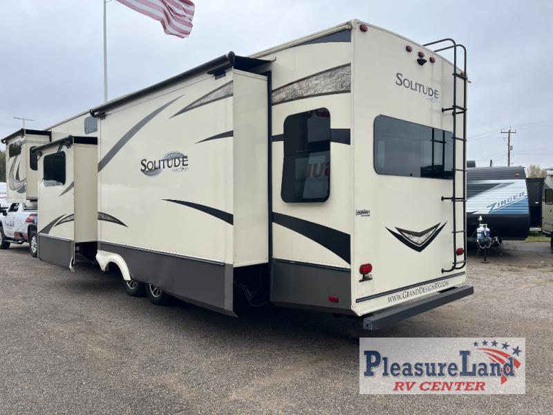 With each Solitude fifth wheel by Grand Design you will receive affordable luxury for your extended stays or weekend get-a-ways. From the solid foundation including a Equa-Flex suspension to the taller ceilings, taller and deeper cabinets, the power reclining theatre seating with swivel table including a heat and massage function, a pet dish drawer, a Stealth AC system, and the Weather-Tek package which allows you to travel any season you choose. It's time to enjoy luxury living where ever you decide to land.