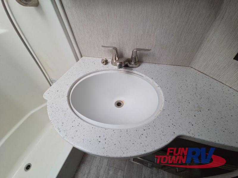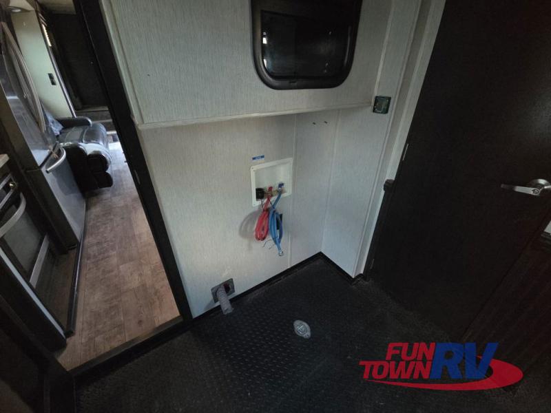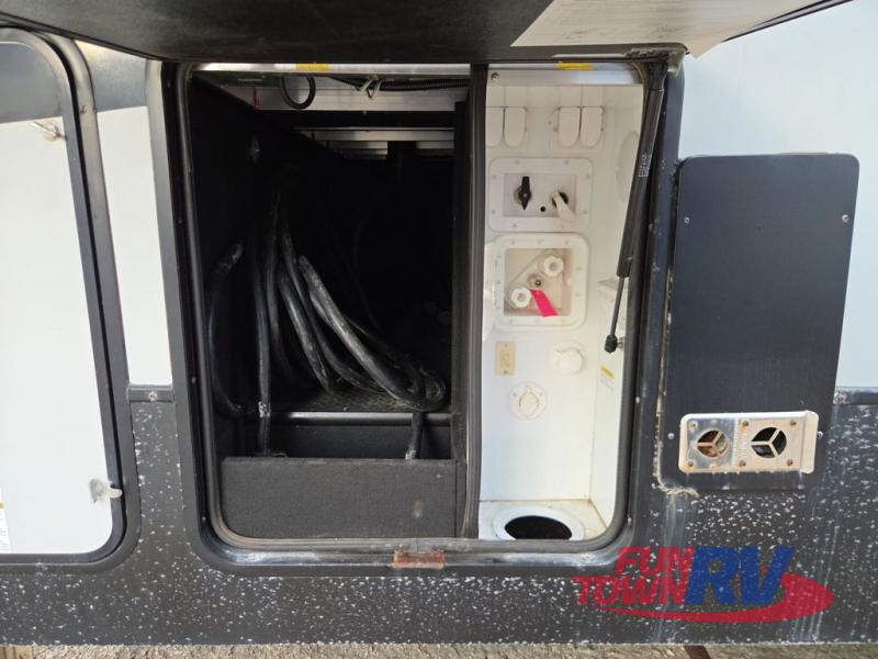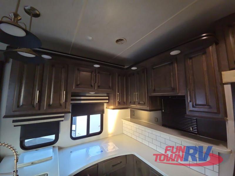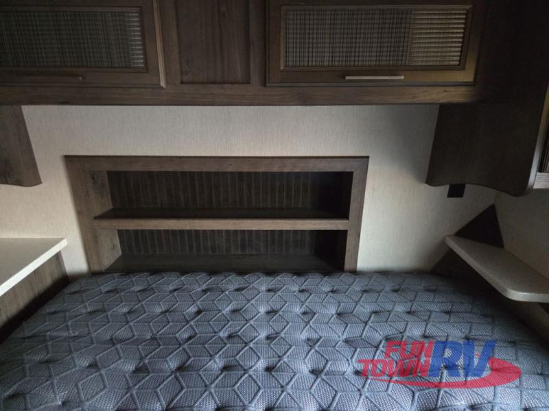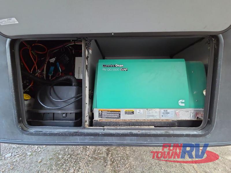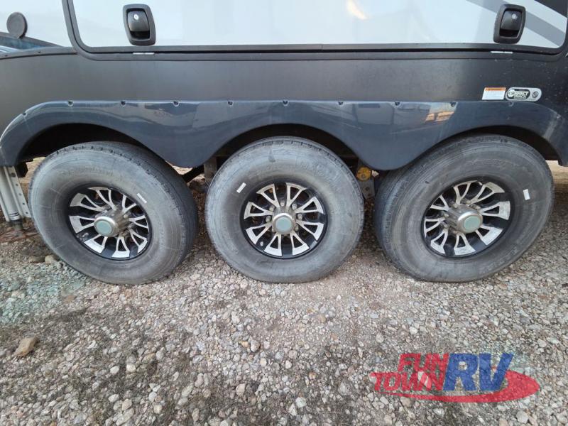 The Cyclone toy hauler fifth wheels by Heartland RV are not your ordinary toy hauler. These models have beautiful cabinets and plenty of comforts throughout such as high quality residential furniture, a 55” LCD HDTV flat screen TV, cable TV and satellite hook-ups, plus a separate DVD/CD/MP3 Bluetooth stereo for the garage and exterior. Along the exterior there are stunning graphics and you will enjoy the view out of the large bedroom picture windows. The two side awnings with LED lights provide plenty of shade during the day, and at night you can grab a snack, your camp chair, and enjoy visiting outdoors just a bit longer. The ultra-light ramp door allows you to easily load your off road toys. In the garage you will also find an electric rear screen, decorative chair rail, plus built-in overhead cabinets with an entertainment center and more! You may even want to add the S5 Package which includes a 2nd fuel cell, 40" garage TV, solid surface counter top in the bedroom, central vacuum, 32" bedroom TV, and upgraded furniture with USB ports and built-in tables.