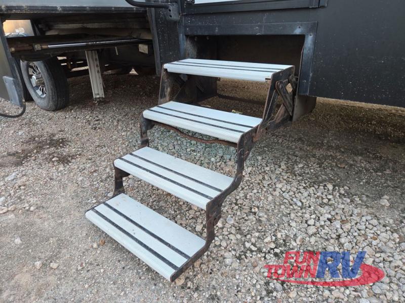 Find comfort and functionality throughout this Cyclone 4005 toy hauler fifth wheel by Heartland RV. This triple slide out model features plenty of room for your whole family from the 13’ rear garage with loft to the front bedroom which features a tilting king bed, a slide out, and plenty of storage space. At the top of the stairs is the main bathroom and in the garage you will find a half bathroom where you can easily clean up when you come in from playing outside. Also outside you will find a kitchen and a slide out TV, so now you can watch a movie out under the stars. Inside there are plenty of seating choices in the living area. From the sofa, lounge chairs, or the loveseat you can easily watch TV at the 55” LCD HDTV and more!