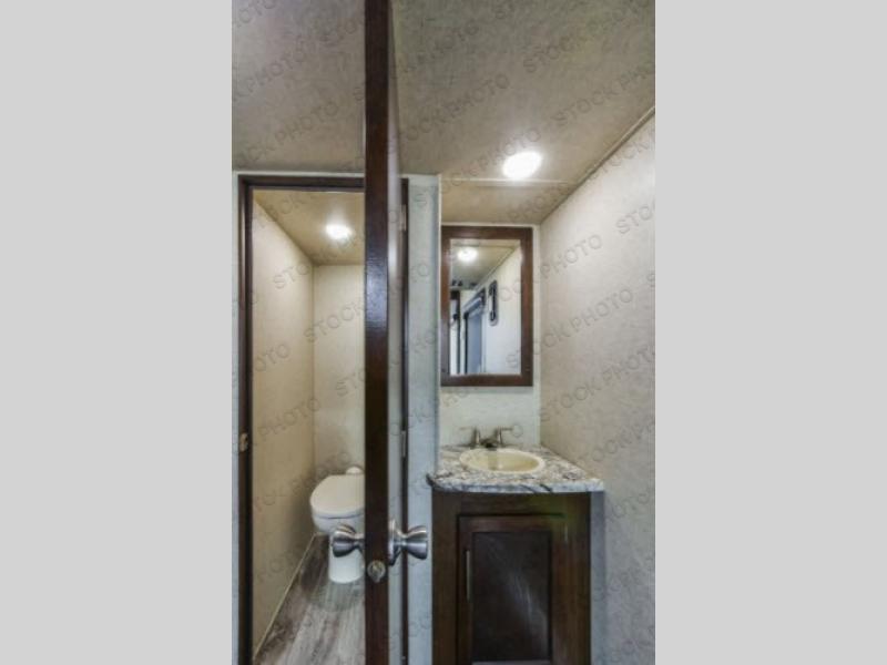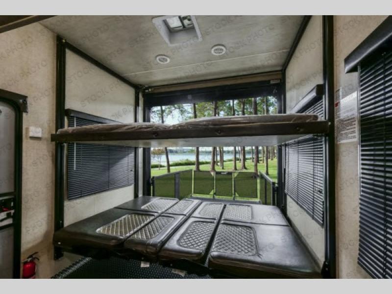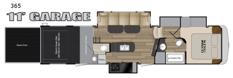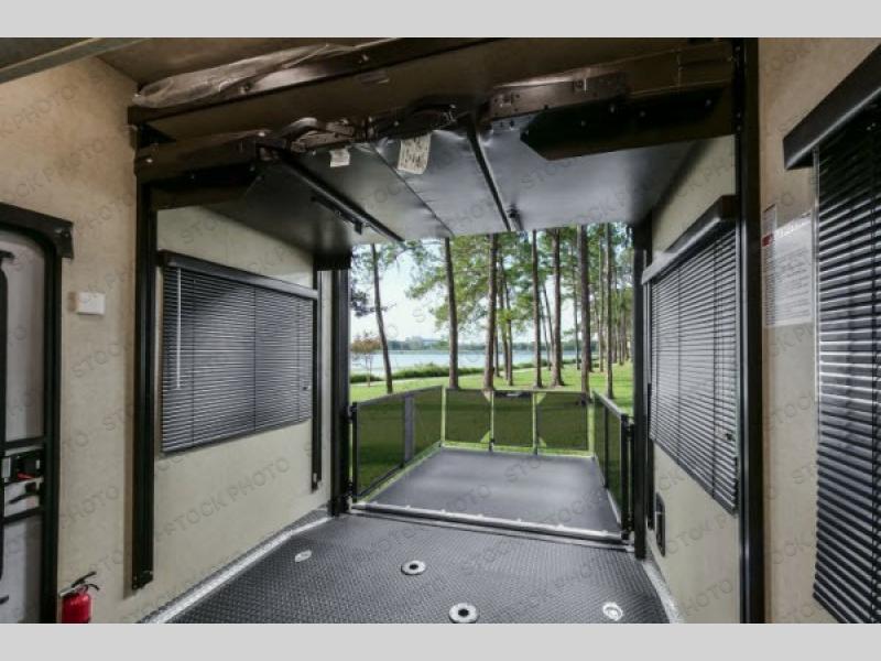 Come load up a few dirt bikes, an ATV, or a four wheeler in this 11' garage and head out to the playground of your choice! With this Torque 365 toy hauler fifth wheel you can enjoy plenty of outdoor activities plus the comfort of your home away from home. The half bathroom is near the garage side door and above you will find a loft for your kids to enjoy. In the combined kitchen and living area there are dual opposing slide outs which help to open up the floor space and provide much room to move around.