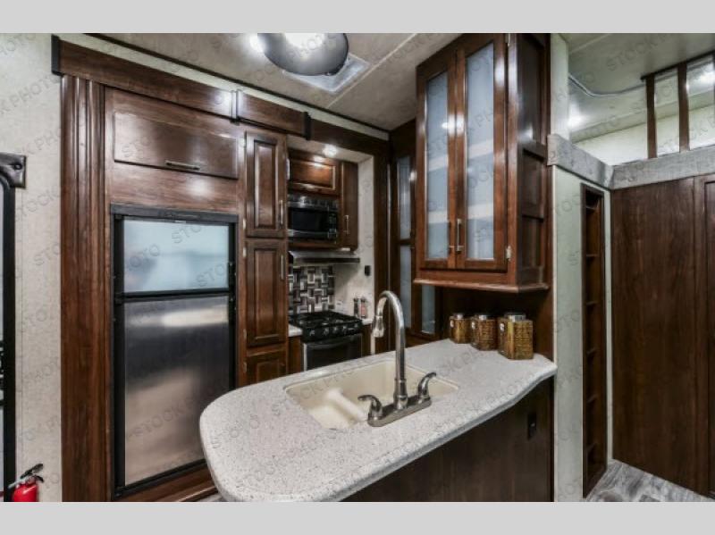 Get ready to have plenty of fun that will last all weekend long with any of the Heartland Torque toy hauler fifth wheels. You can easily fuel up your toys at the outside fuel station. In the garage you will find that the rubberized floor is fuel and oil resistant. In the kitchen there are solid surface countertops and a high rise kitchen pull-out faucet. You can relax at the residential furniture with built-in recliners and throughout each model there is a high end Ashlyn cabinetry as well as high-end carpet and cold/crack resistant flooring. The SS Package features a painted front cap, exclusive SS graphics, solid surface countertop in the kitchen only, and aluminum steps.
