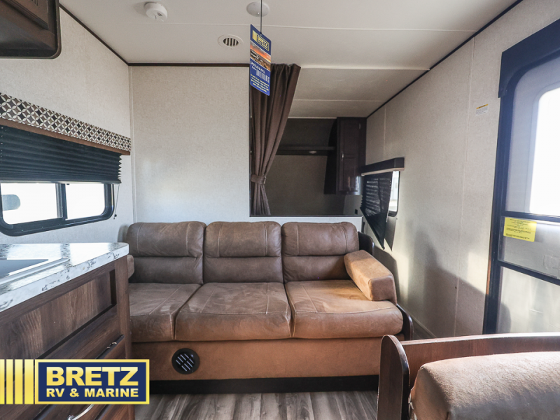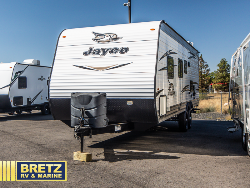 With any Jayco Jay Flight travel trailer you will get solid construction from the fully integrated A-frame, the l-class cambered structural steel l-beams, and the Magnum Truss roof system with seamless DiFlex II material. The 30" x 72" main entrance door, the entrance and baggage doors are all keyed alike, and the radial tires offer safety and security you will want every where you travel and setup. It's time to find out what else the Jay Flight has to offer that you can't travel without. Choose your favorite model today!