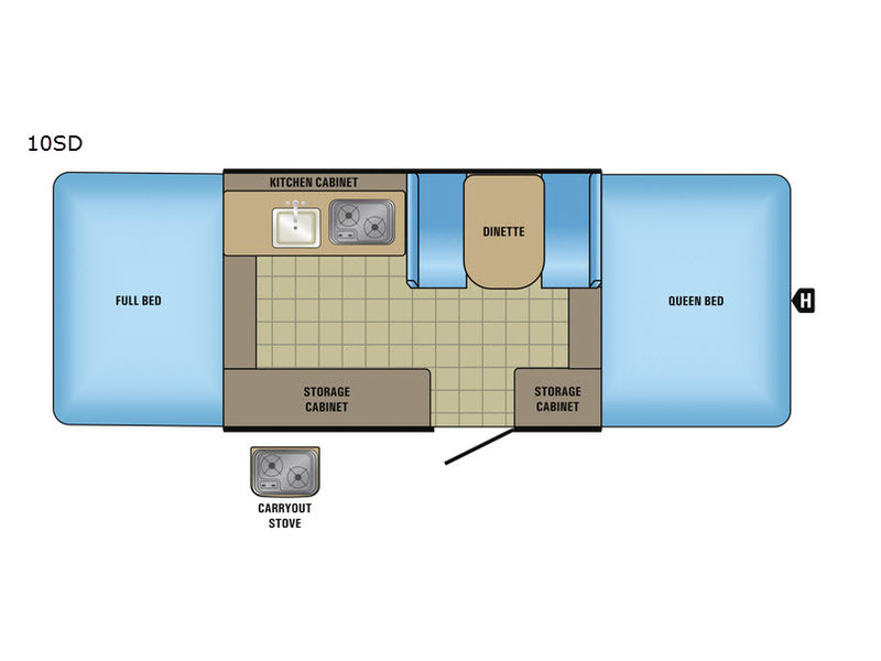 The Jayco M-10 SD may be small in size, but it’s big on value. Setup is quick and easy, and once expanded, you’ll enjoy a spacious interior with comfortable sleeping arrangements, a functional kitchen space, and plenty of room to relax. Its lightweight build means most SUVs or small trucks can tow it with ease, making it a smart and flexible option for a variety of camping adventures.